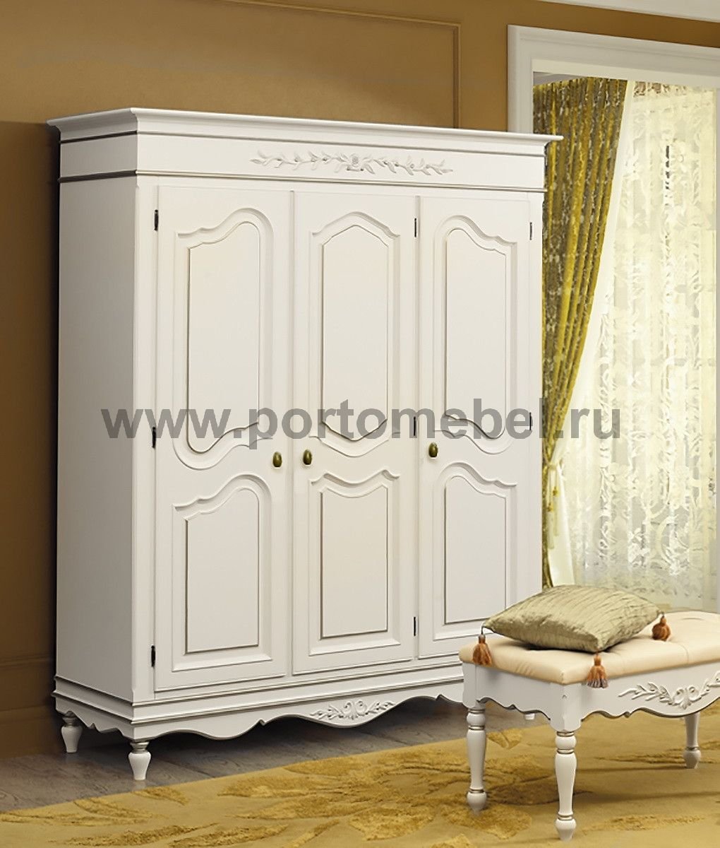 Шкаф платяной трехстворчатый белый классика