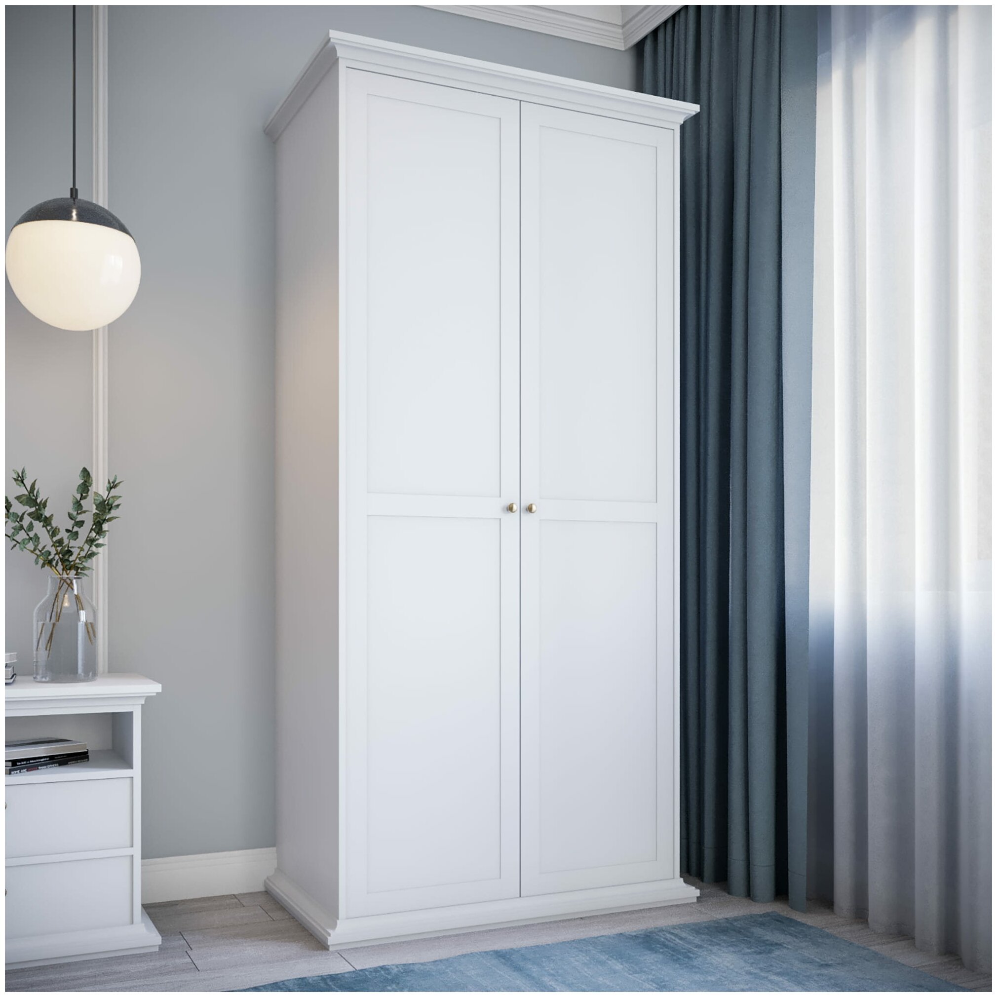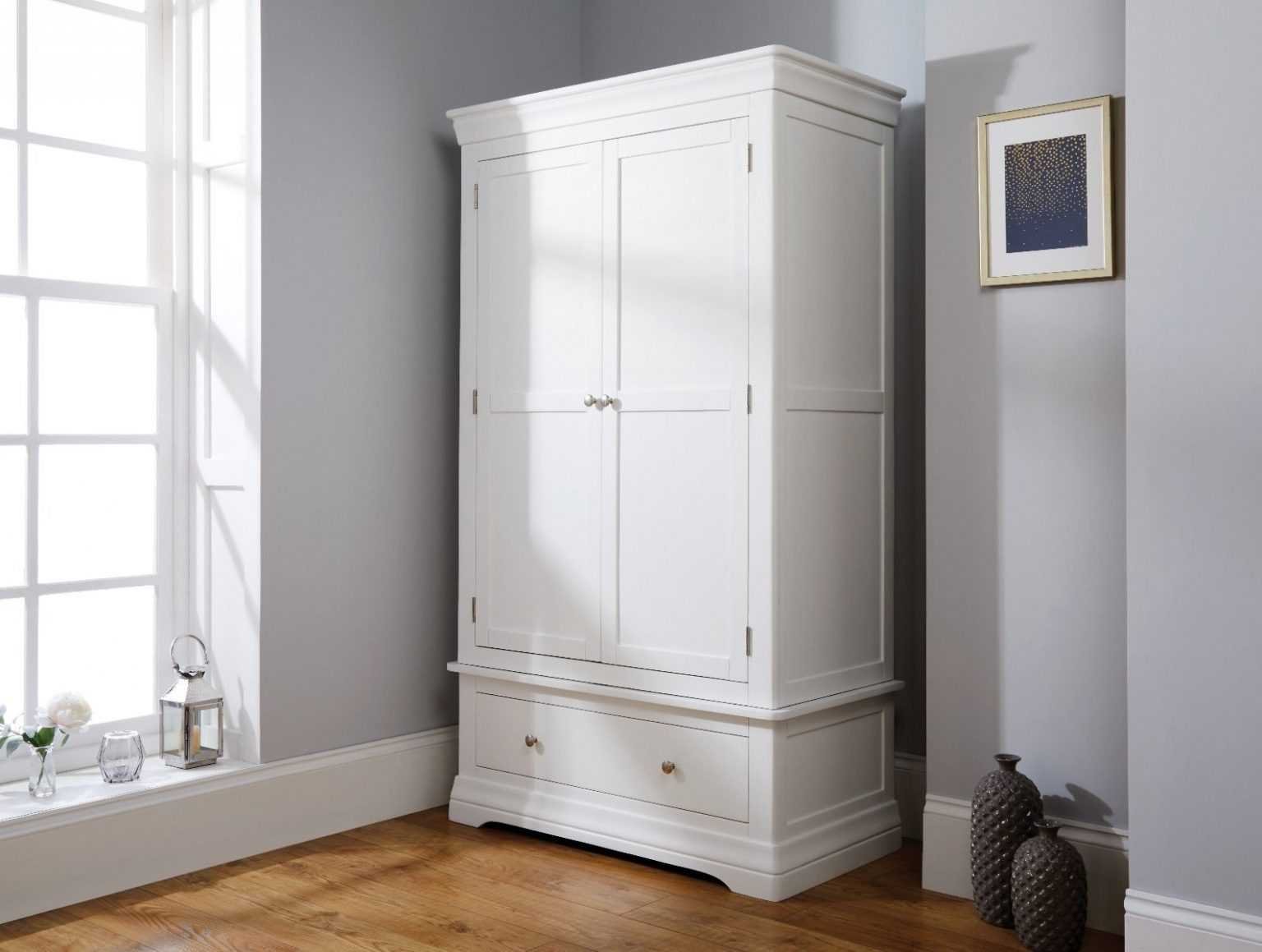 Белый шкаф в интерьере с распашными дверями