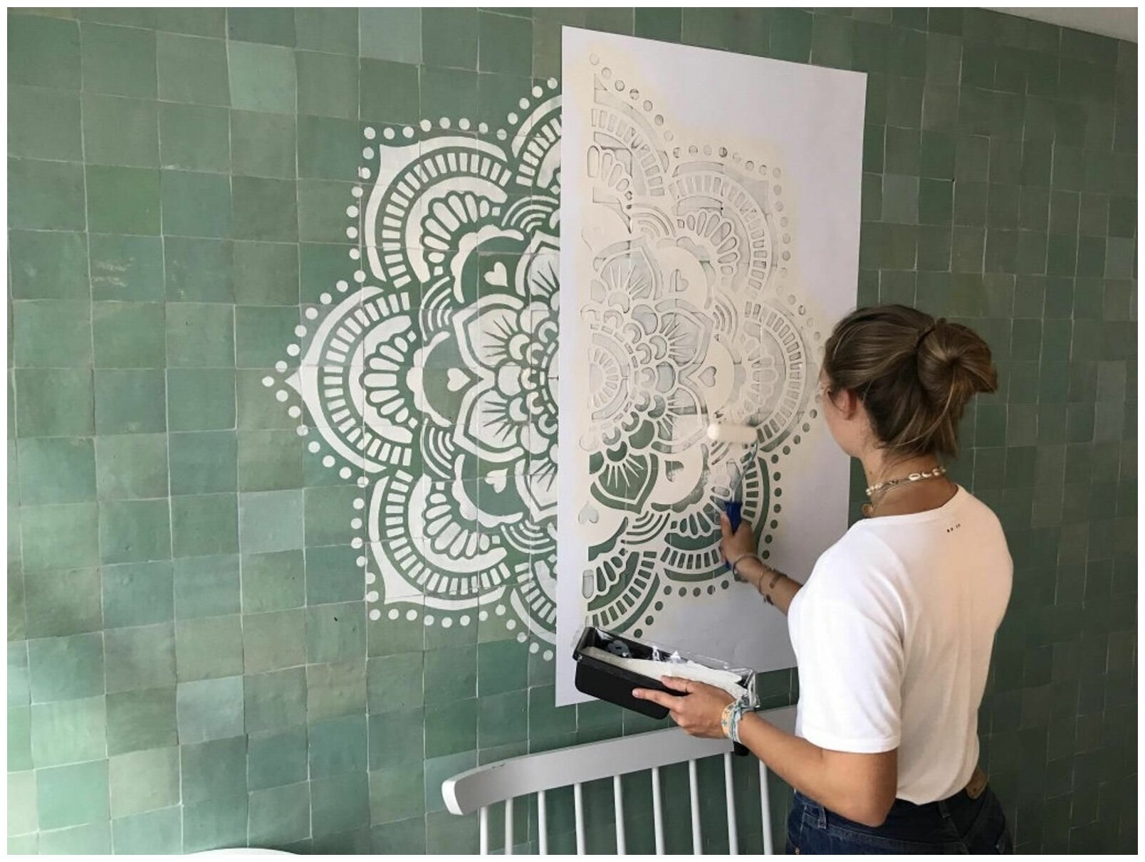 Покраска стен через трафарет