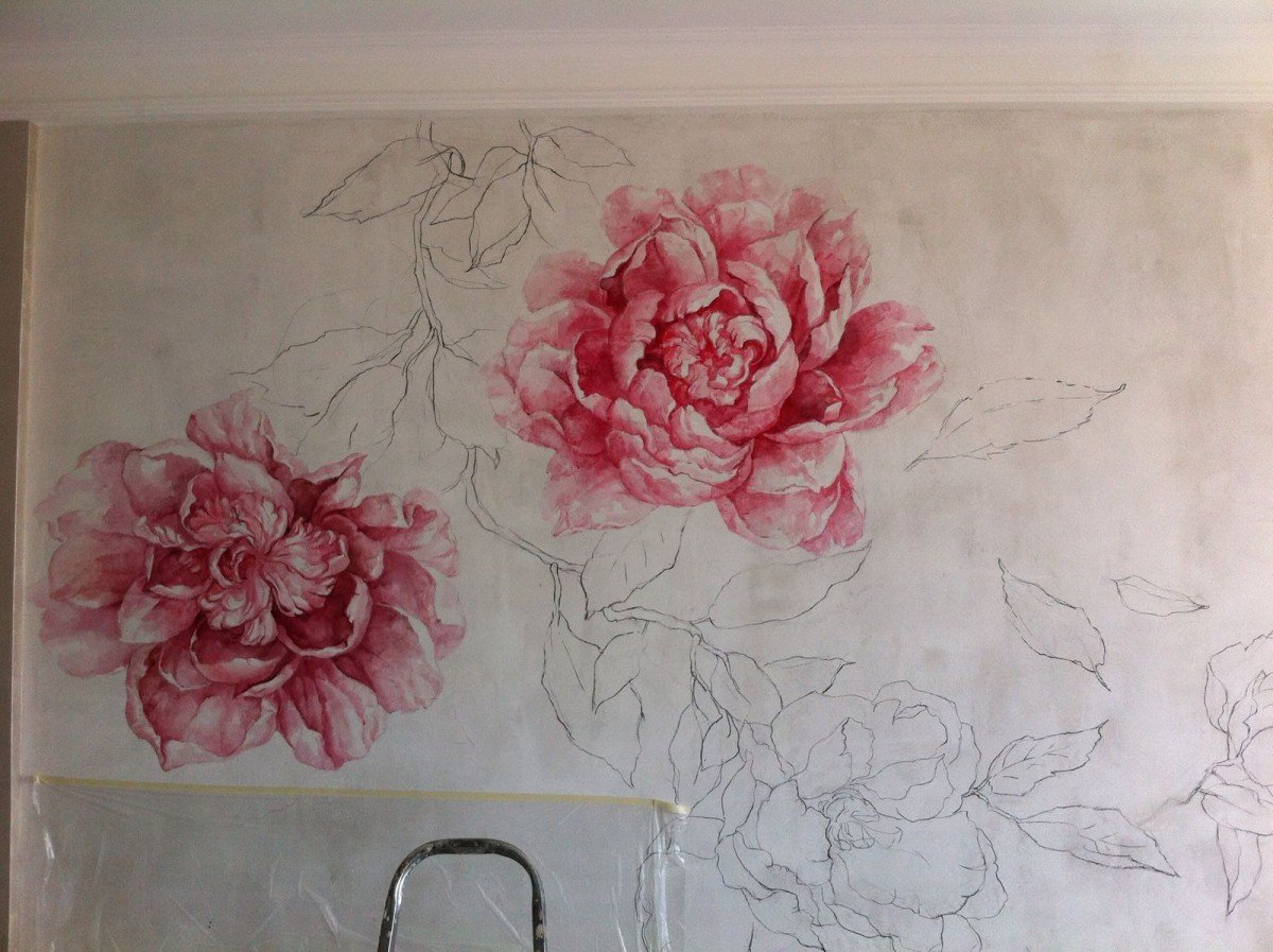 Роспись стен пионы