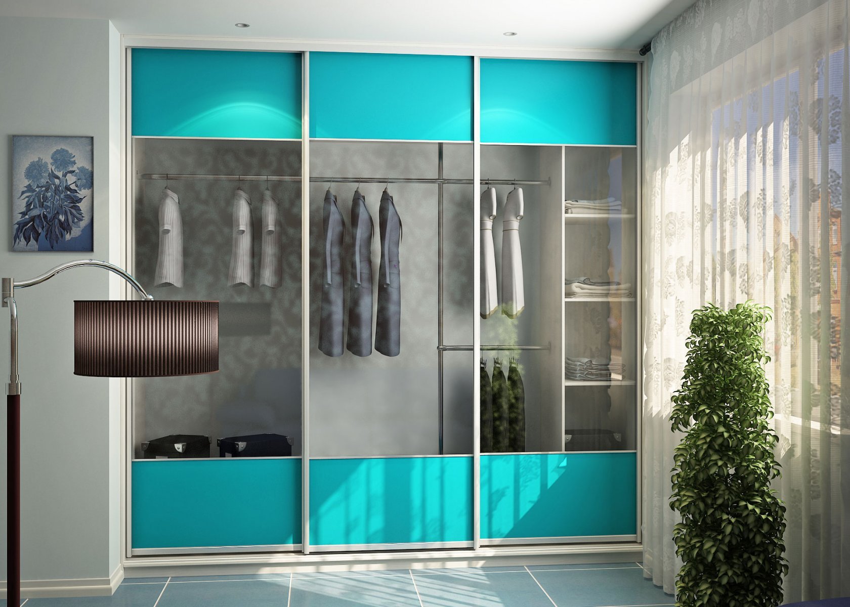 Бирюзовый шкаф купе