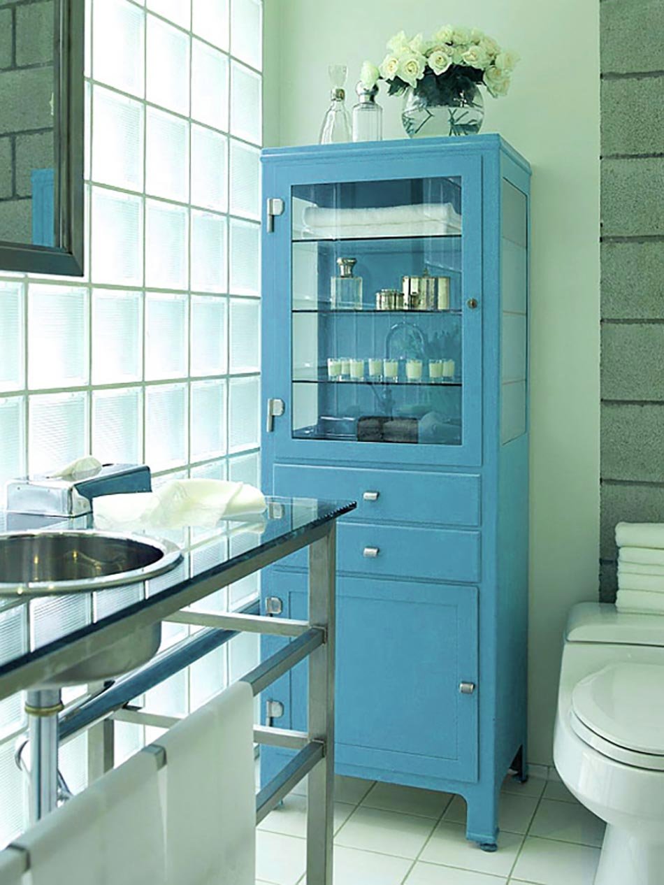 Бирюзовый шкаф для ванной