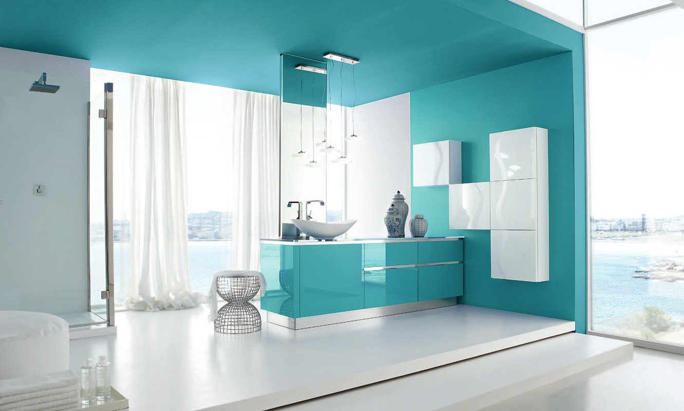 Бирюзовые стены белая мебель