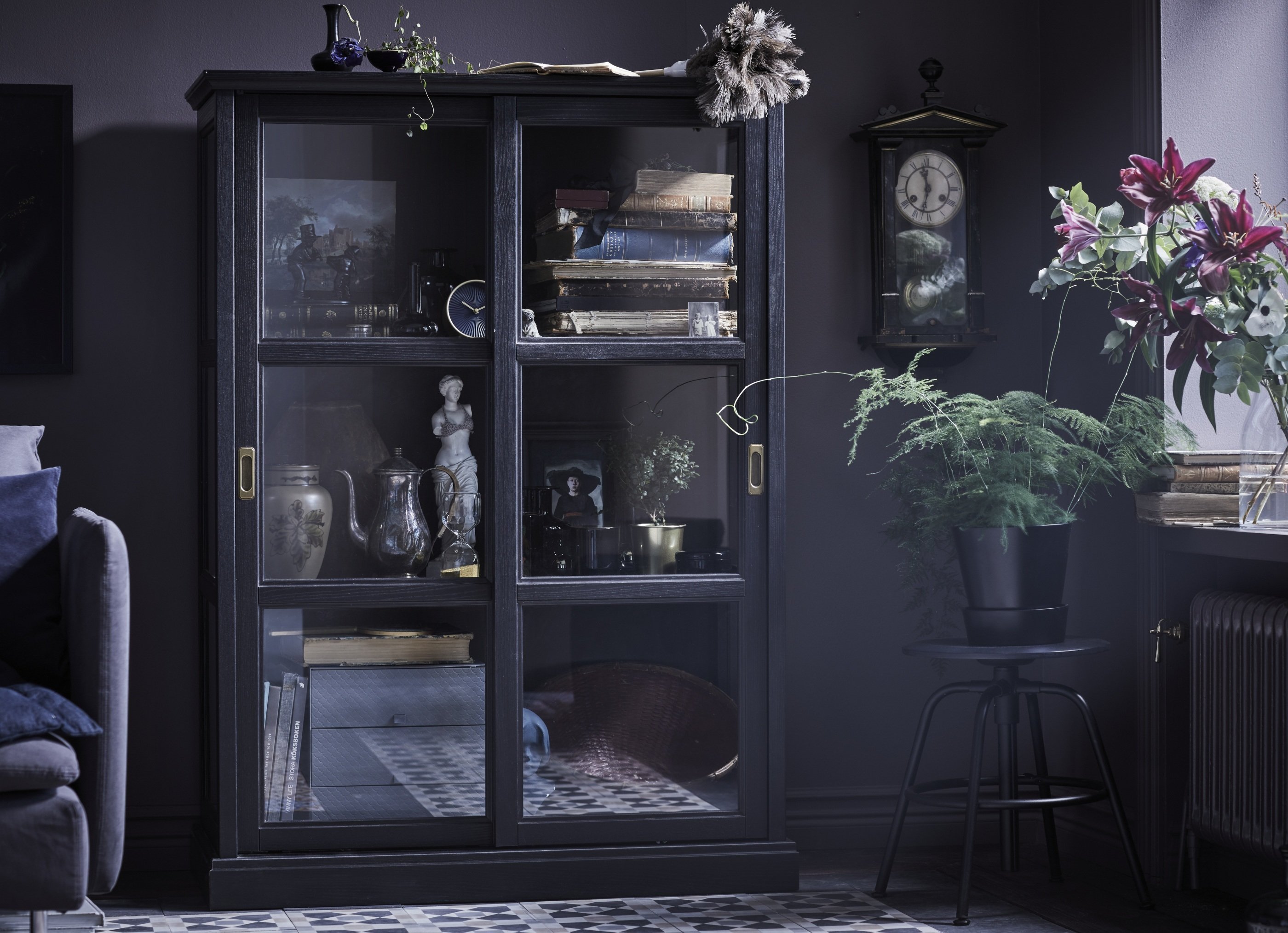 Brimnes БРИМНЭС шкаф-витрина, черный 80x190 см
