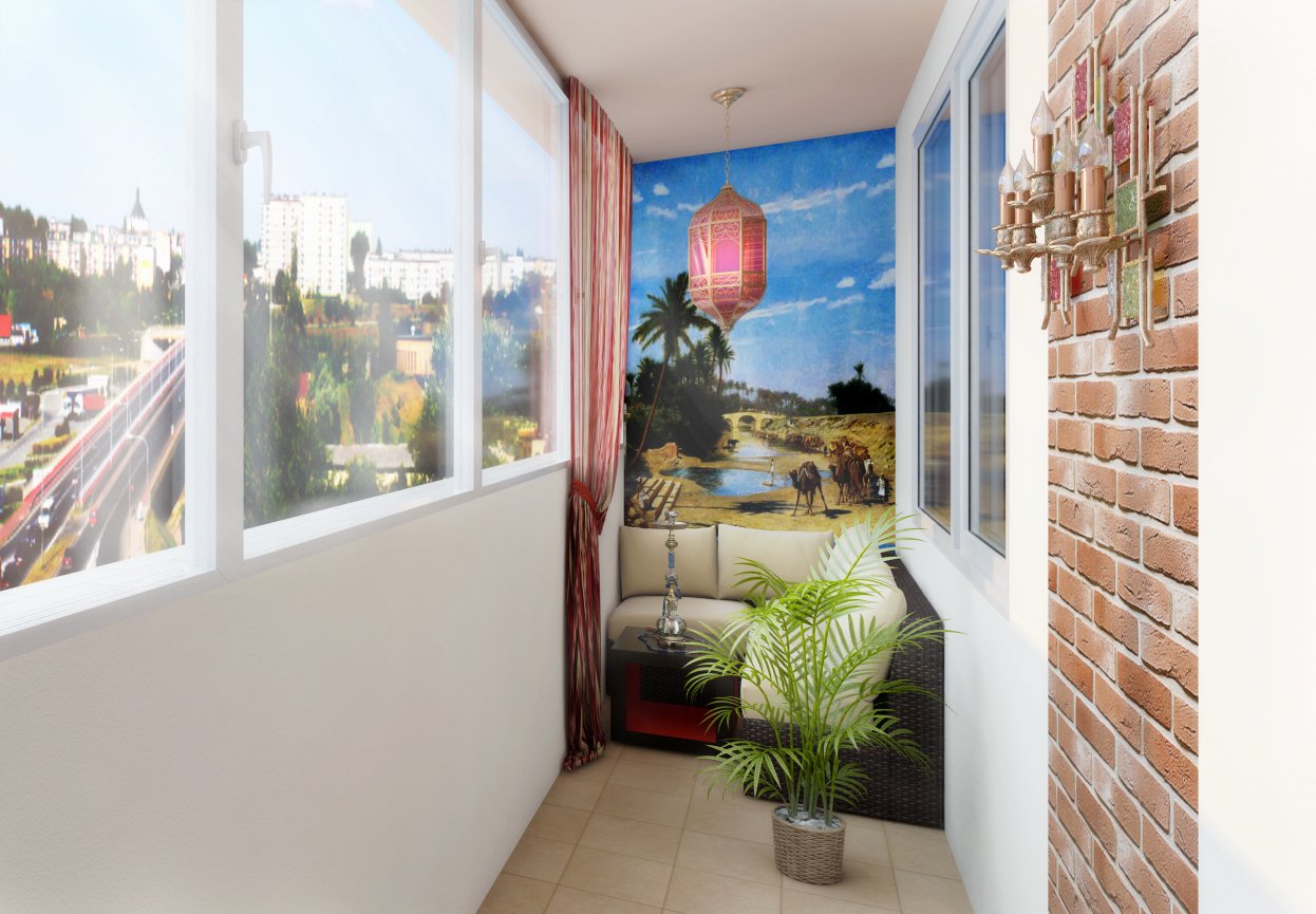 Отделка лоджии кирпичиками