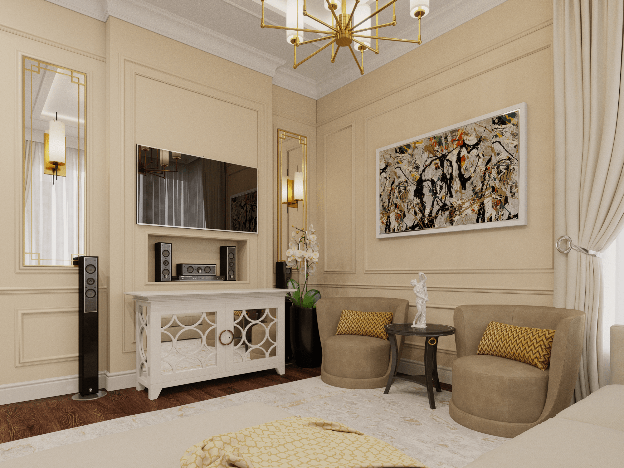 Неоклассика с золотом в интерьере