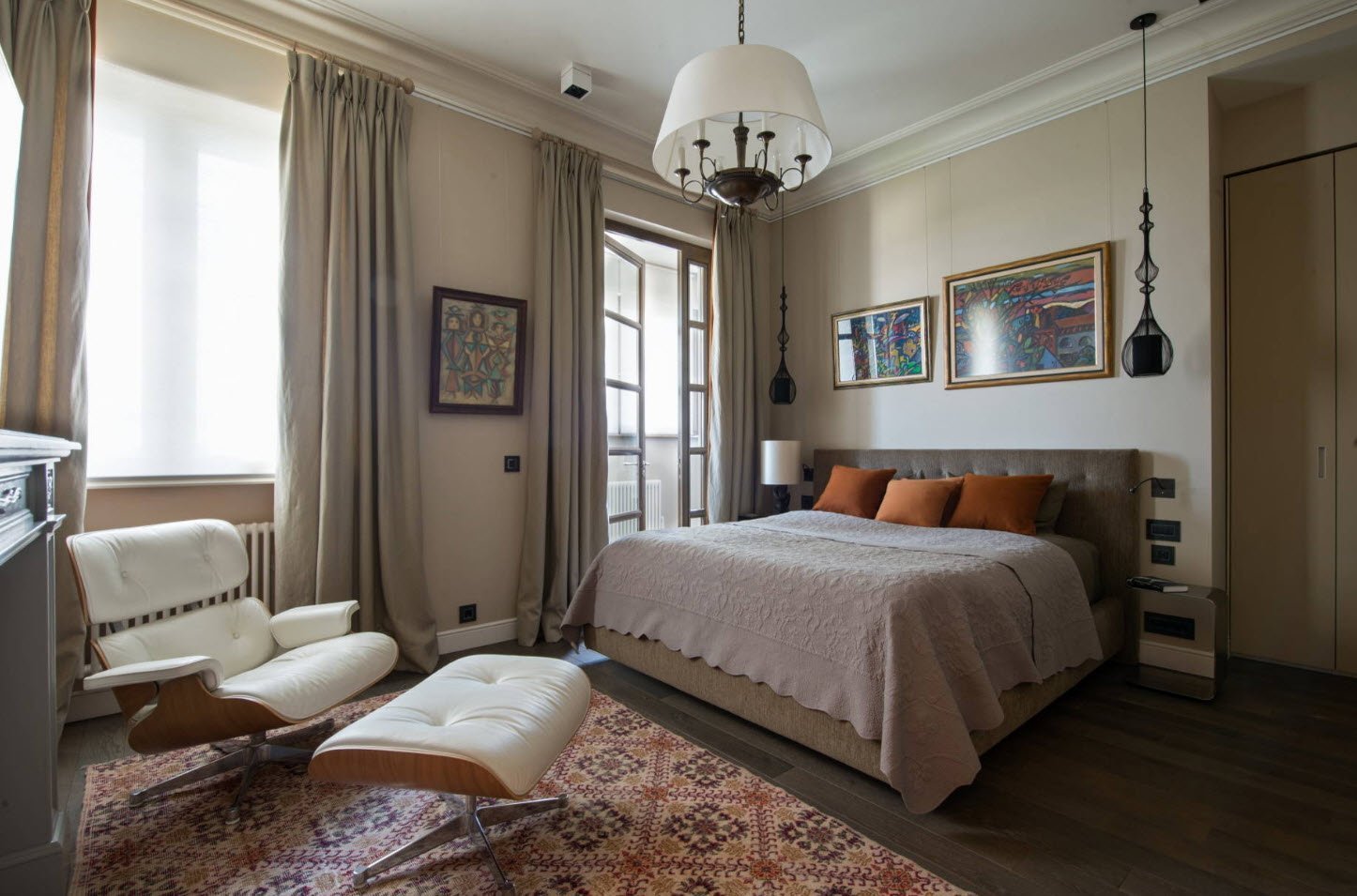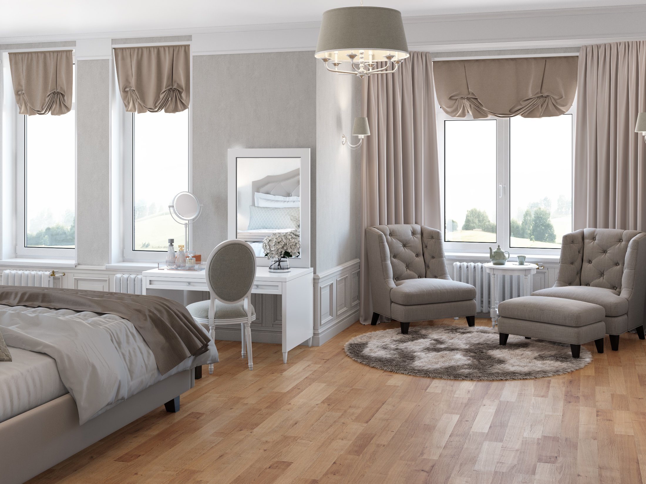 Спальня с большим окном в классическом стиле