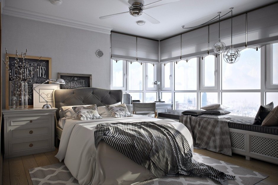Спальня с лоджией в скандинавском стиле