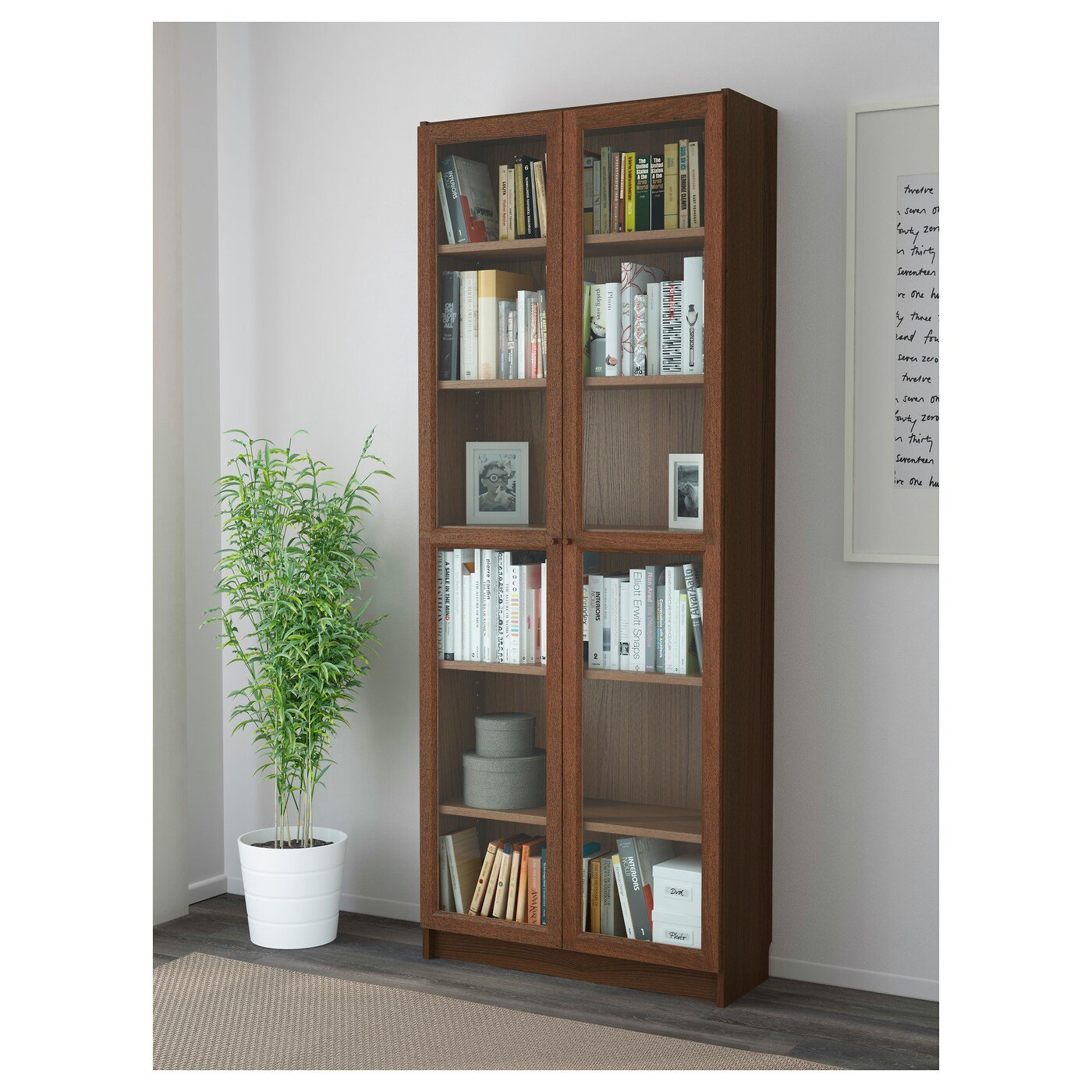 Билли шкаф книжный со стеклянными дверьми, темно-красный, 80x30x202 см