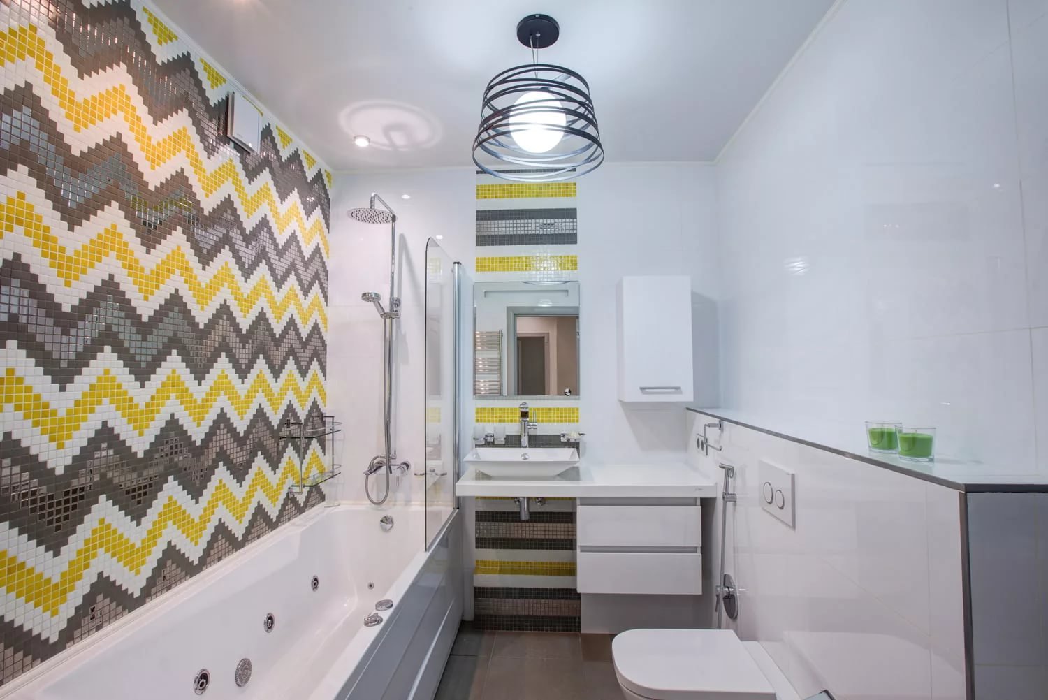Желто серая плитка в ванной