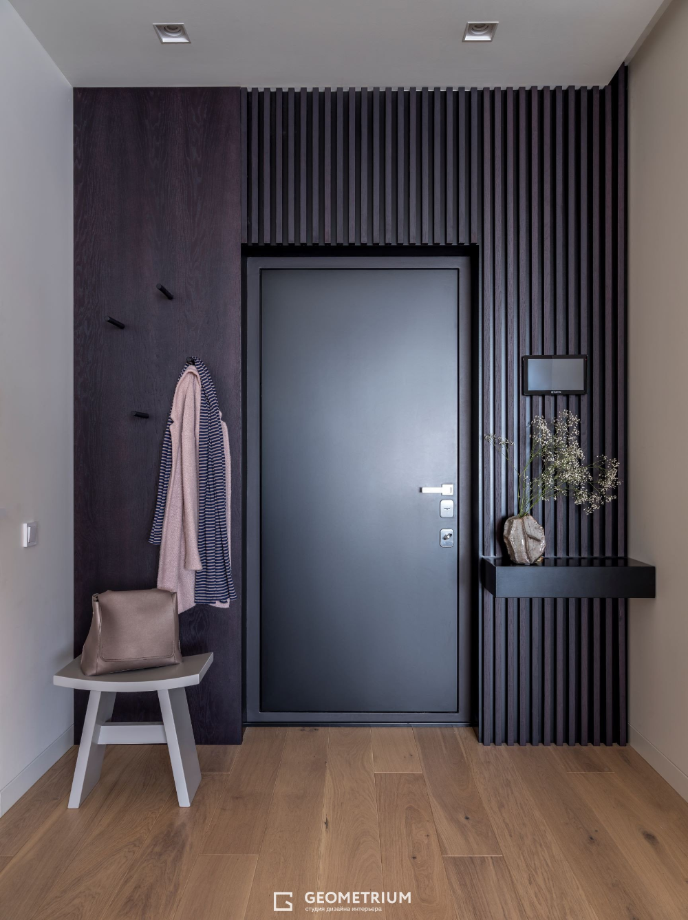 Прихожая с рейками на стене