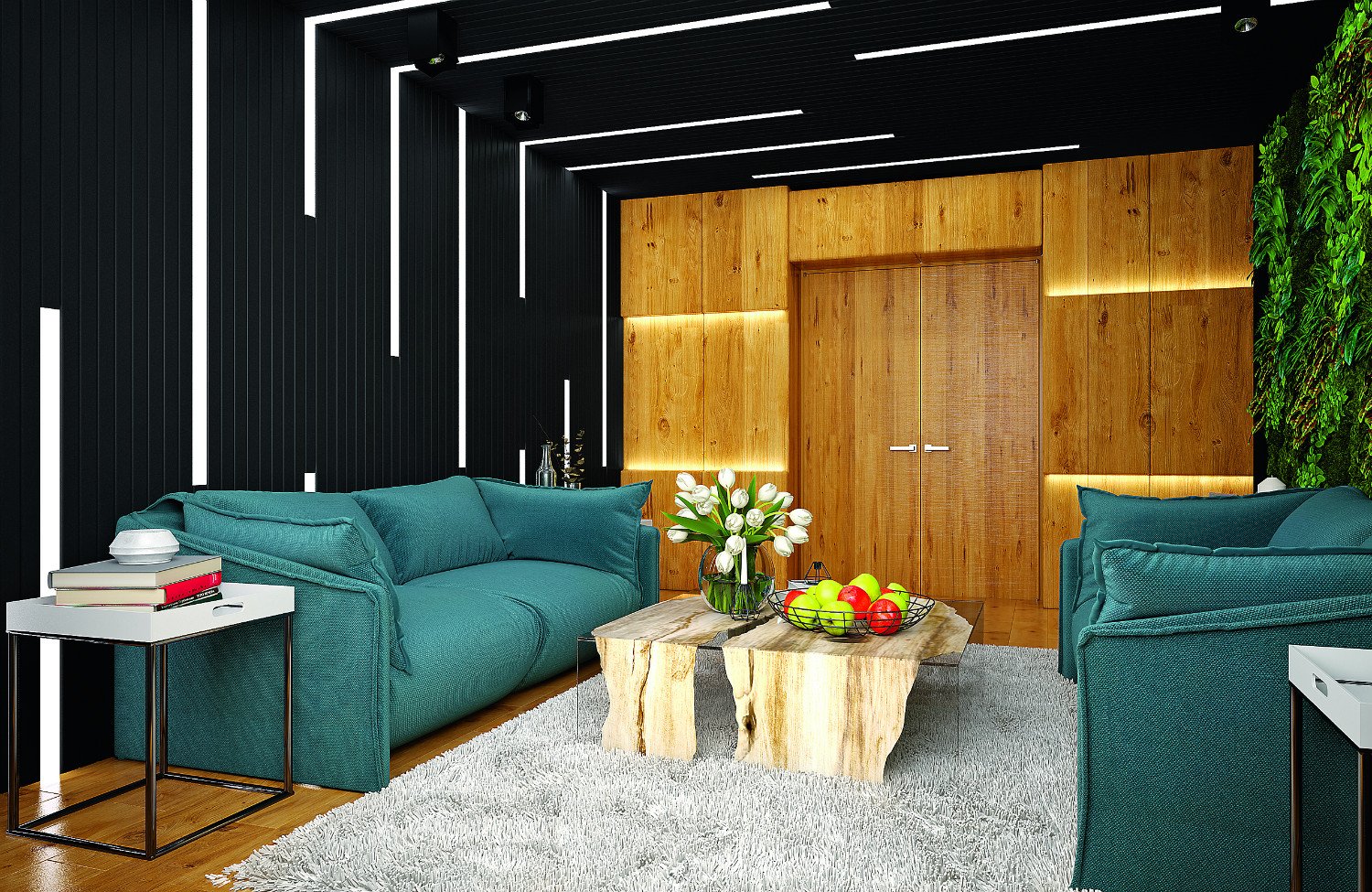 Декоративные рейки в гостиной
