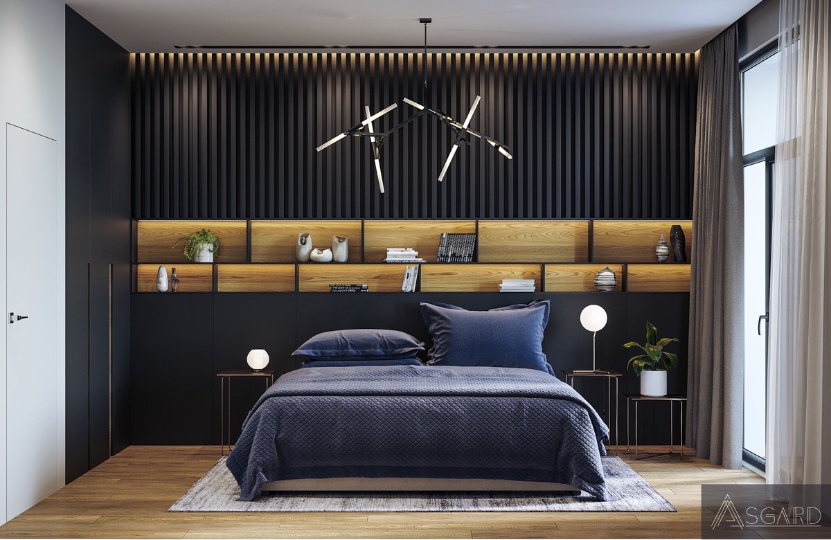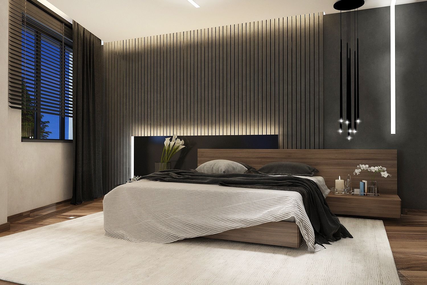 Черные рейки в спальне