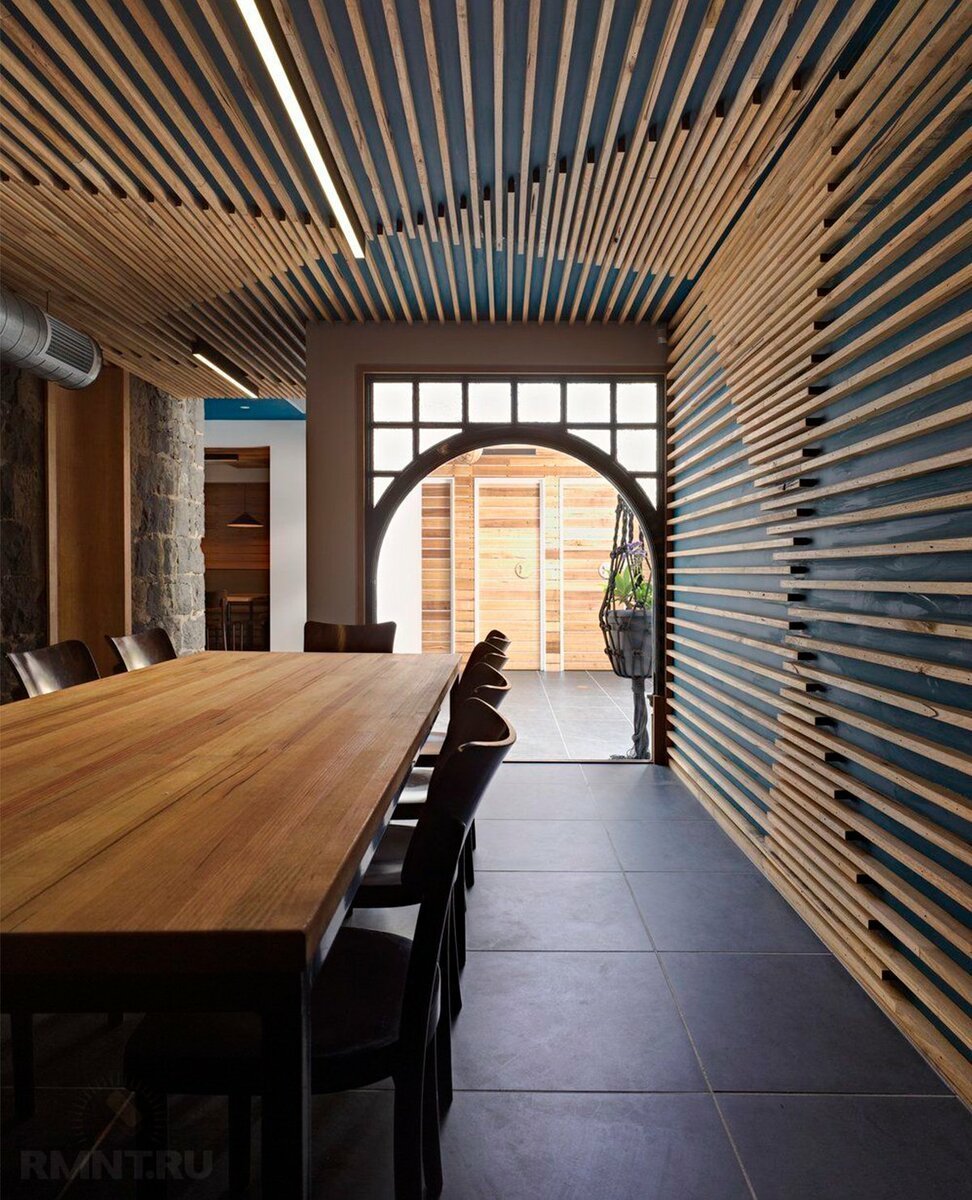Деревянные рейки в интерьере