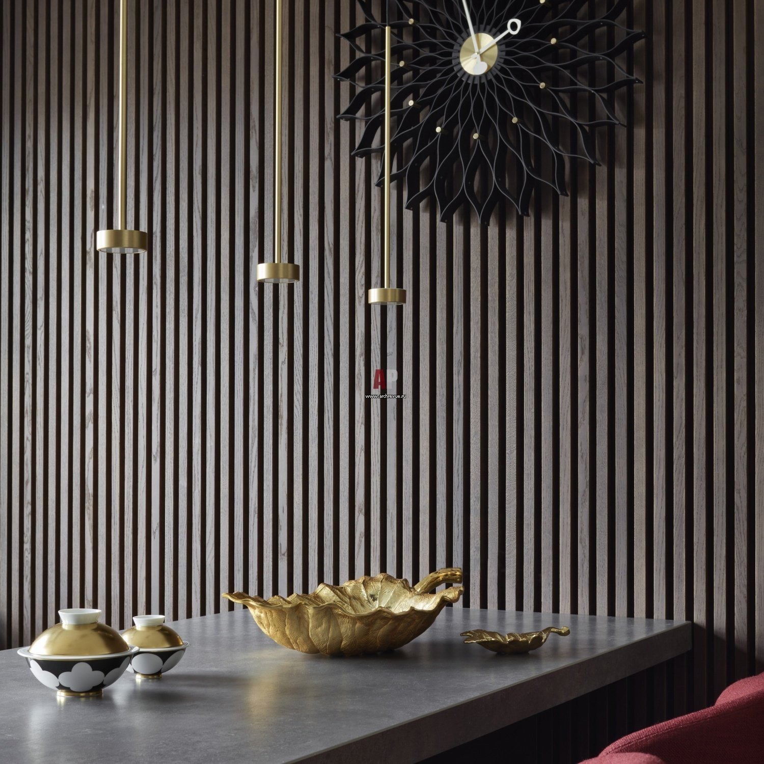 Гостиная с деревянными рейками