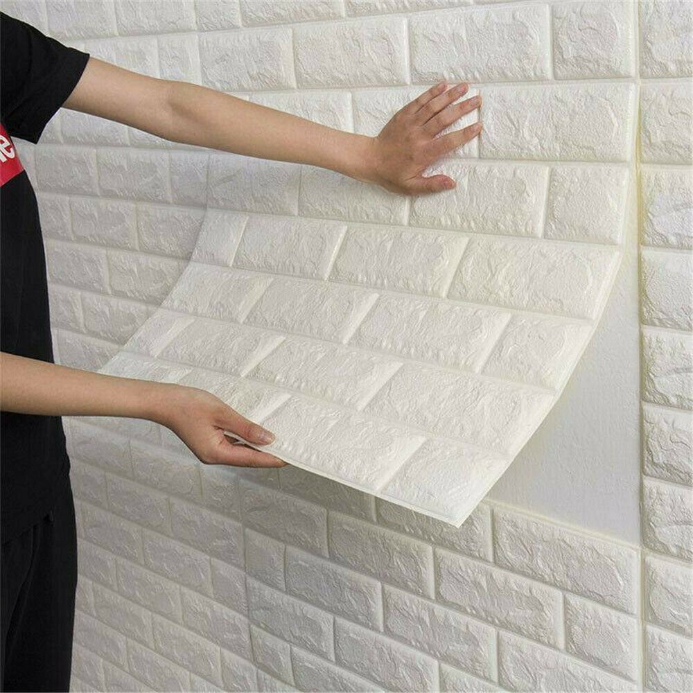 3d панели самоклеящиеся блок 20шт белый кирпич 76х71