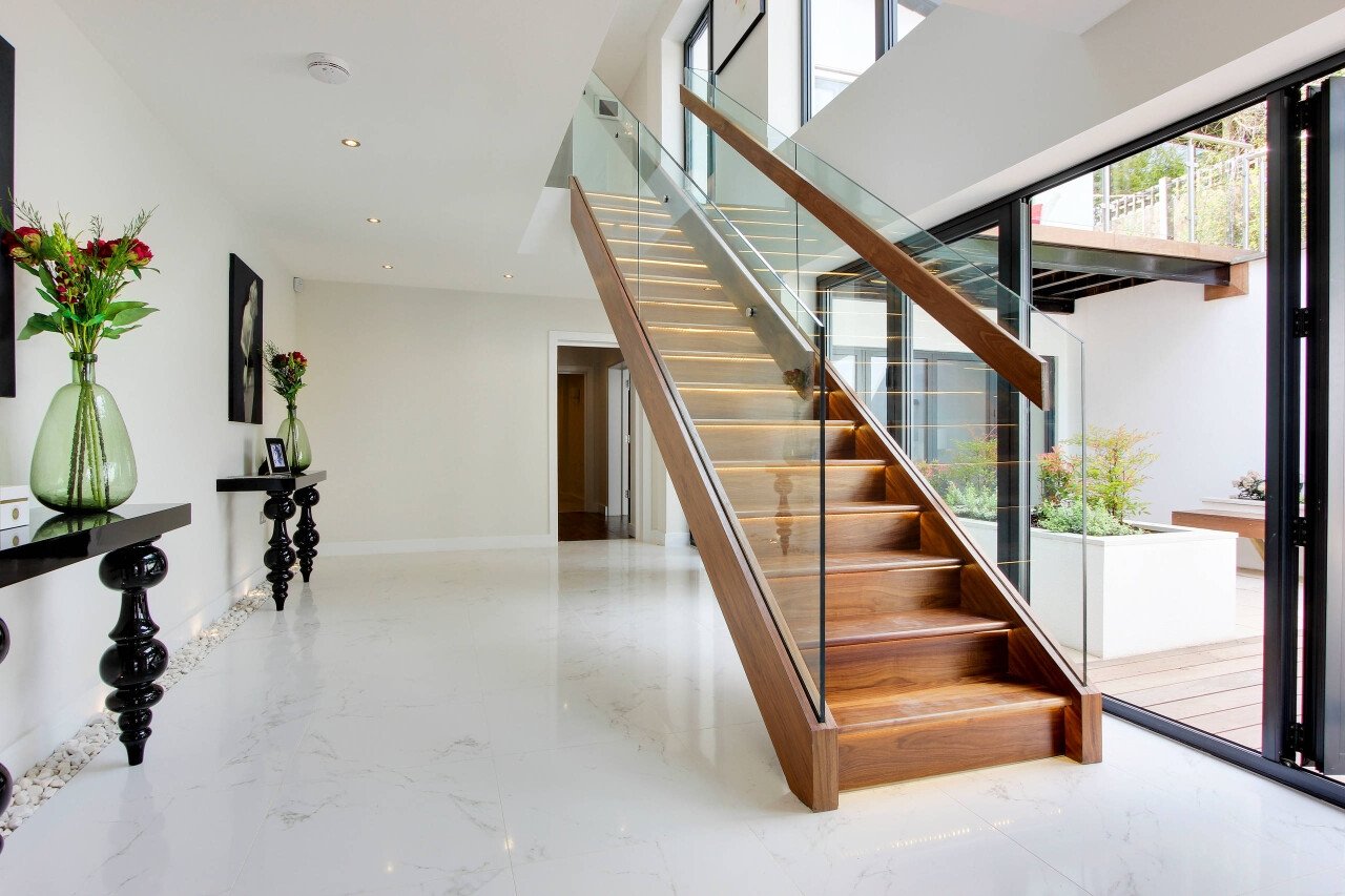 Лестница на второй этаж в современном стиле