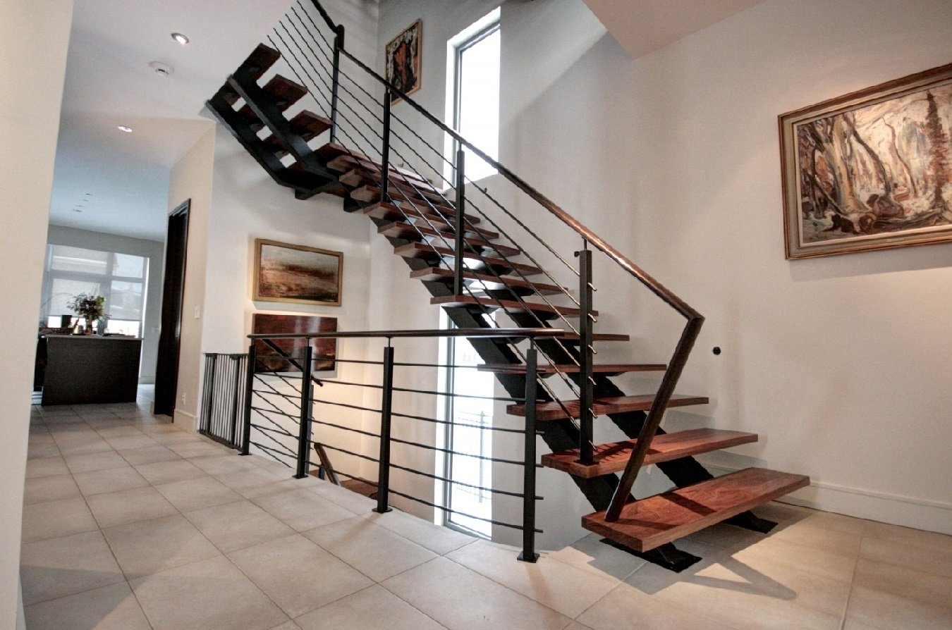 Дизайн лестницы на второй этаж в частном доме из металла
