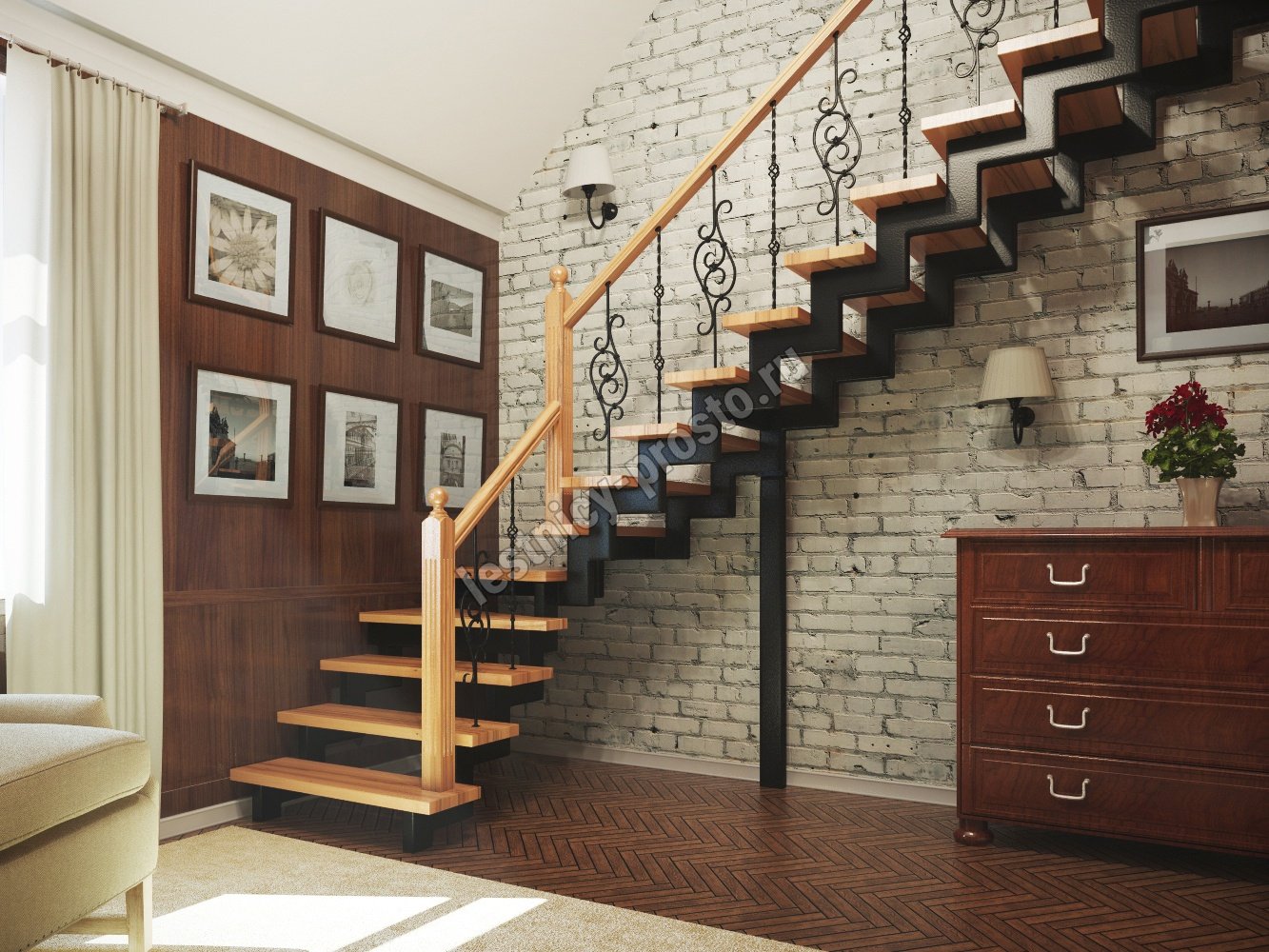 Одномаршевые лестницы на второй этаж в частном доме