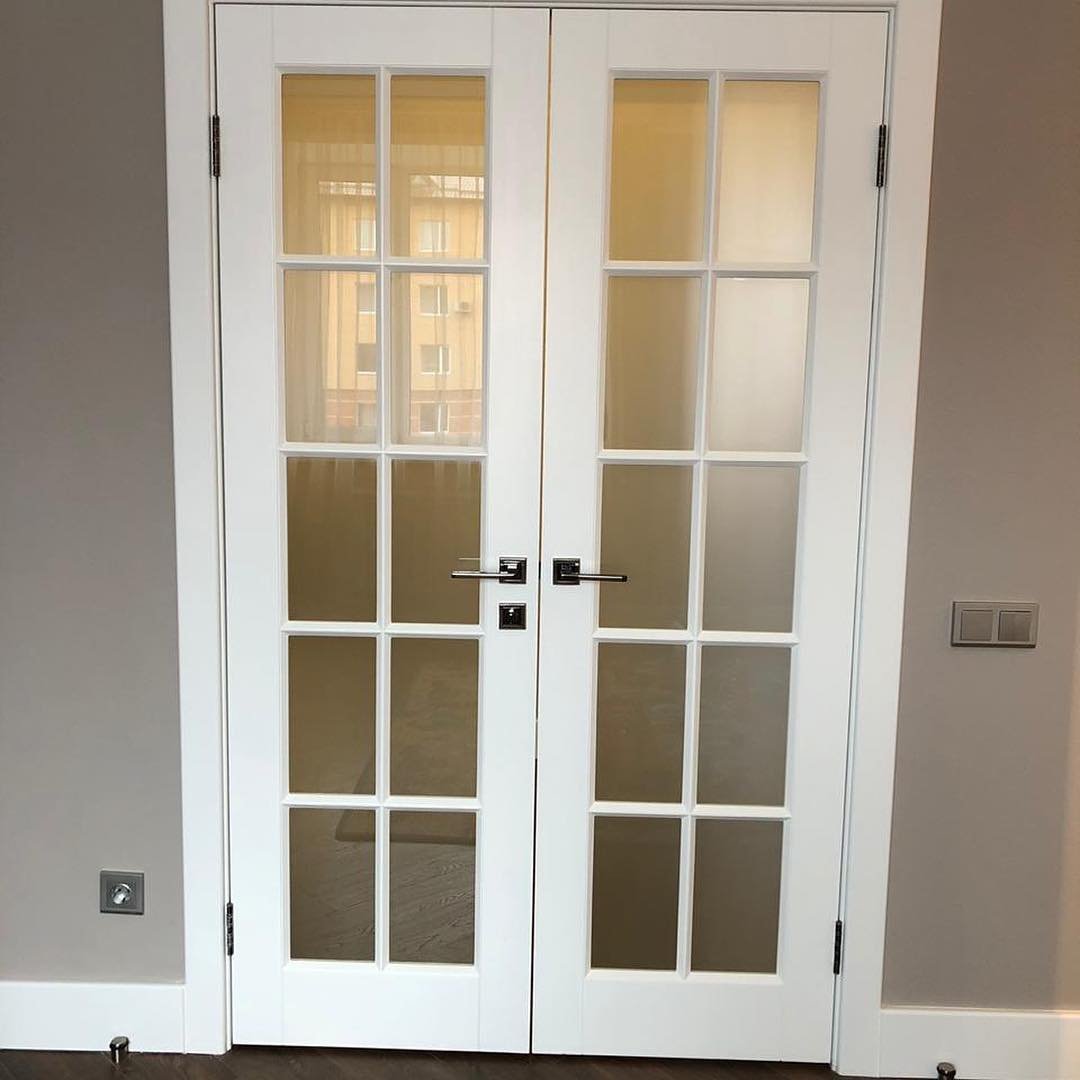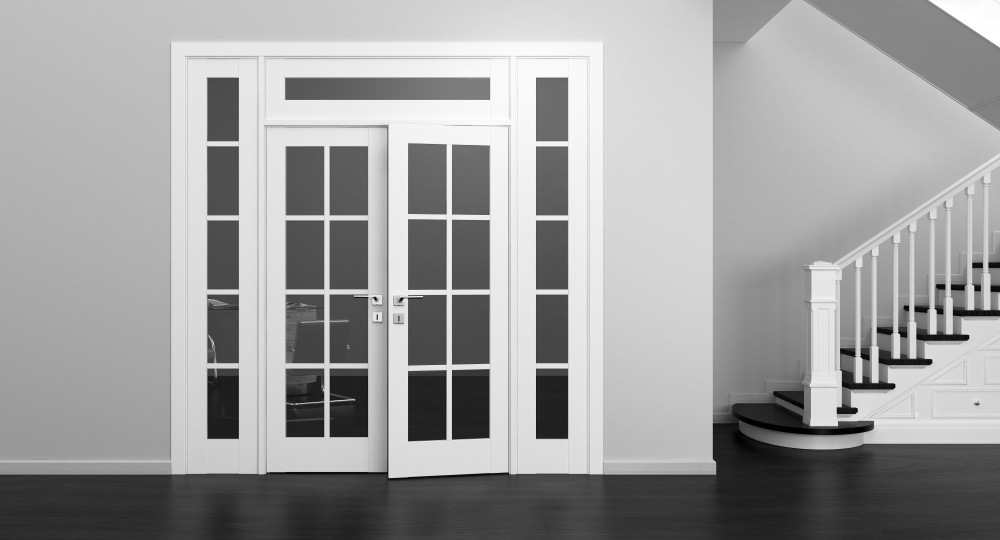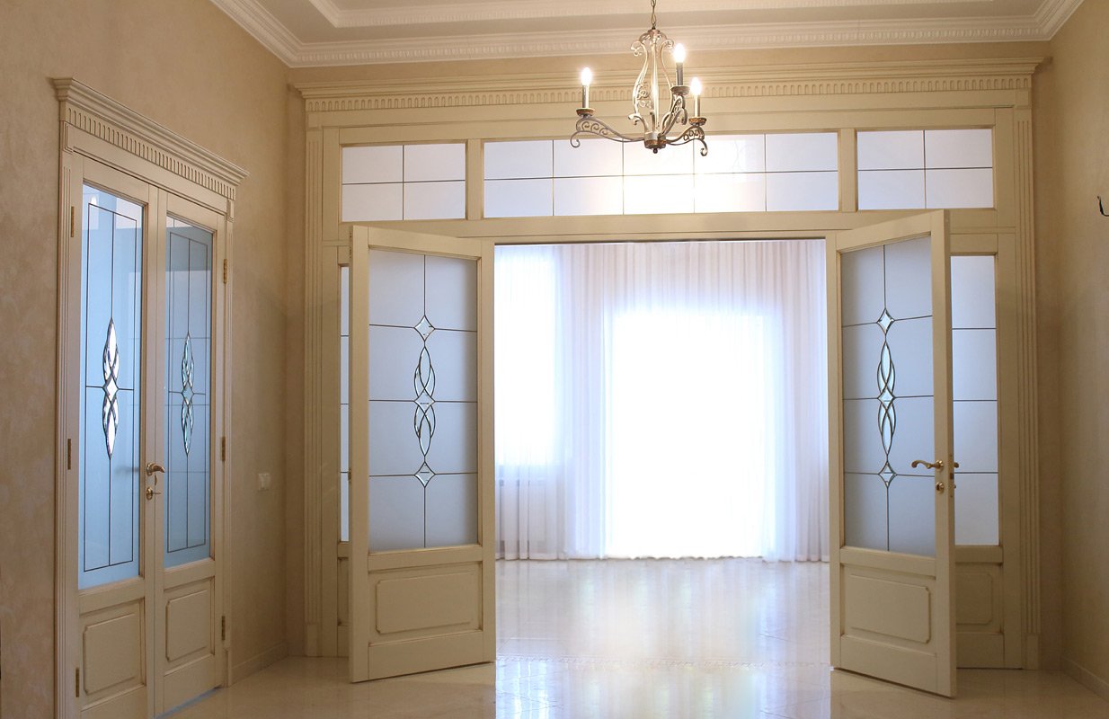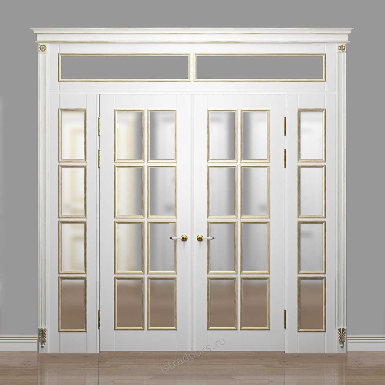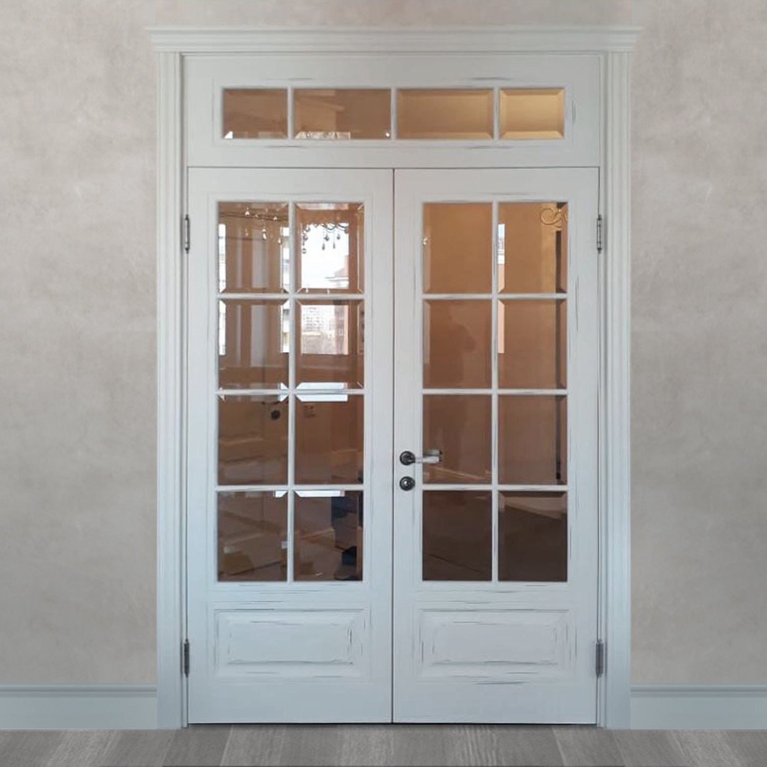 Распашные двери межкомнатные двустворчатые с фрамугой