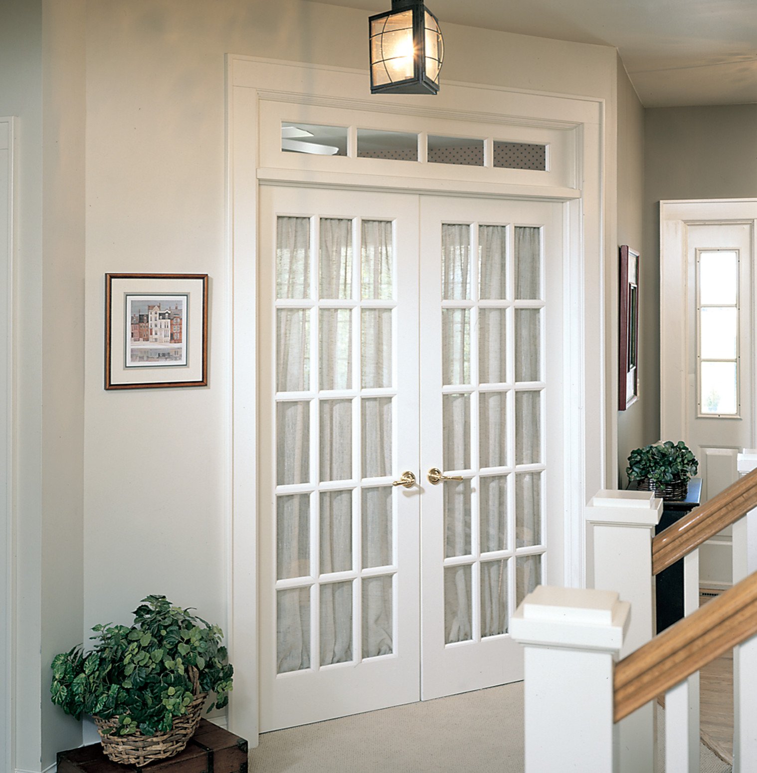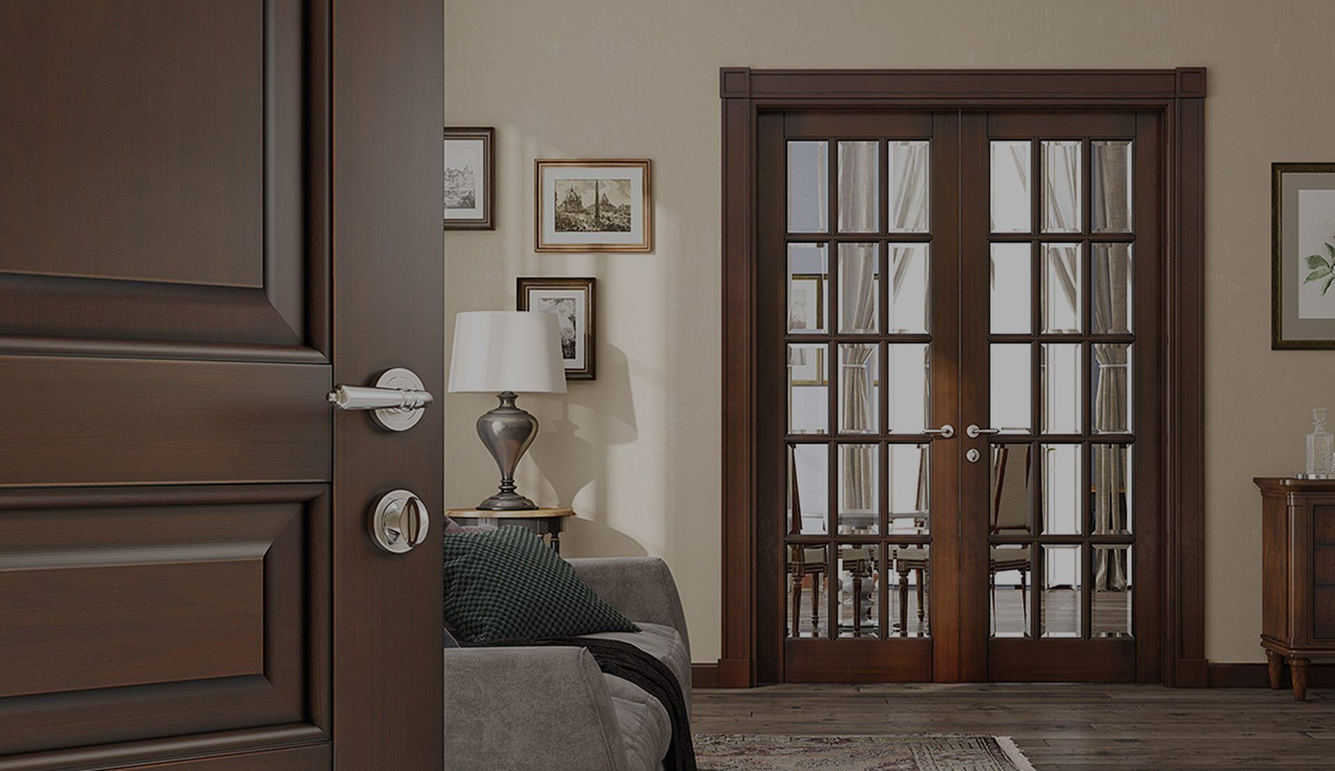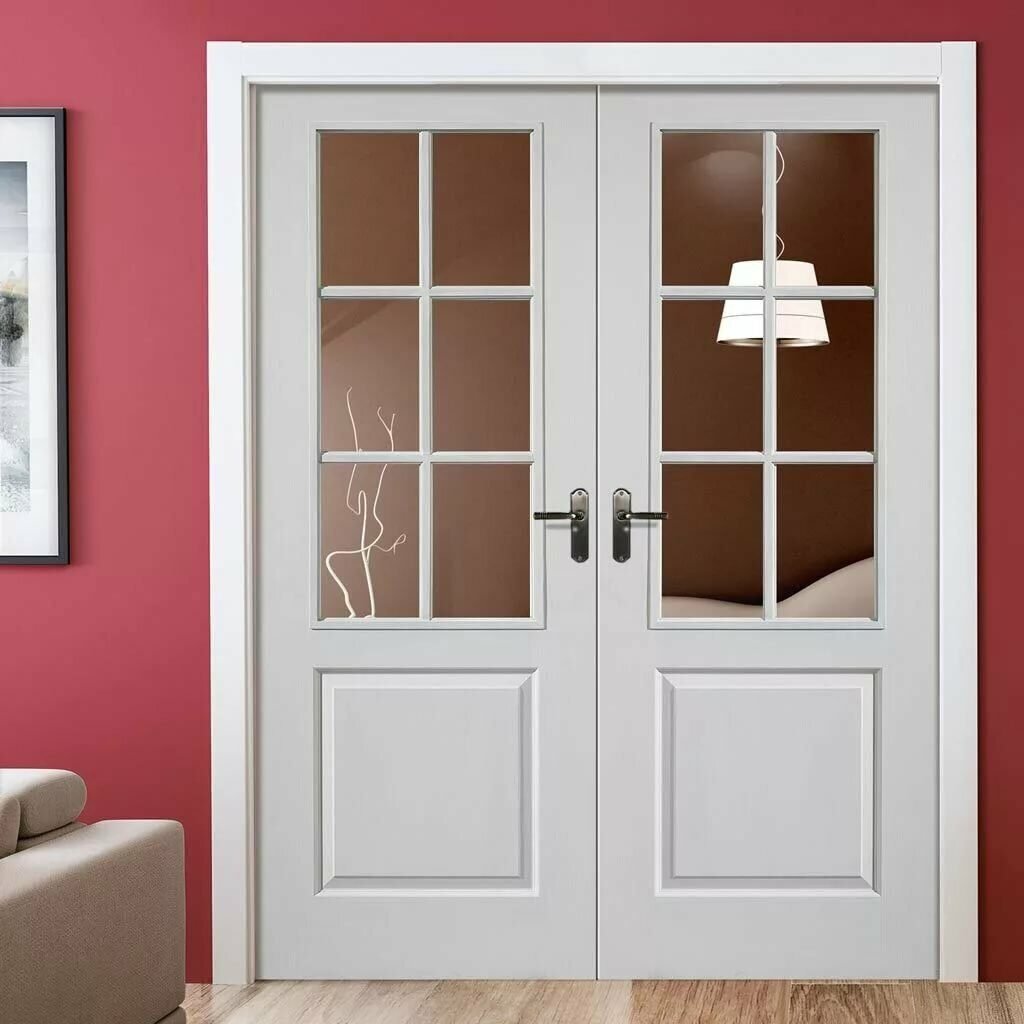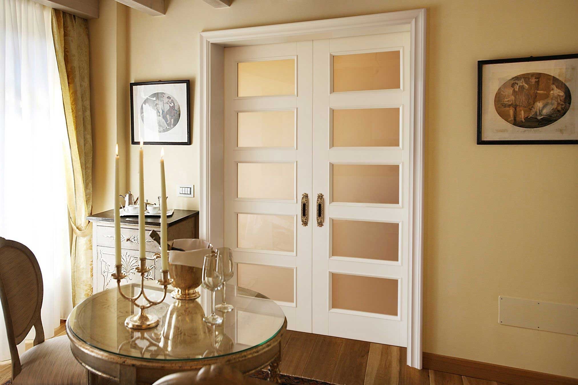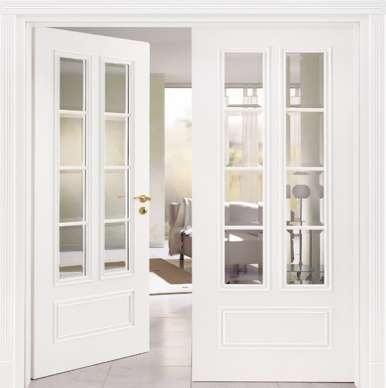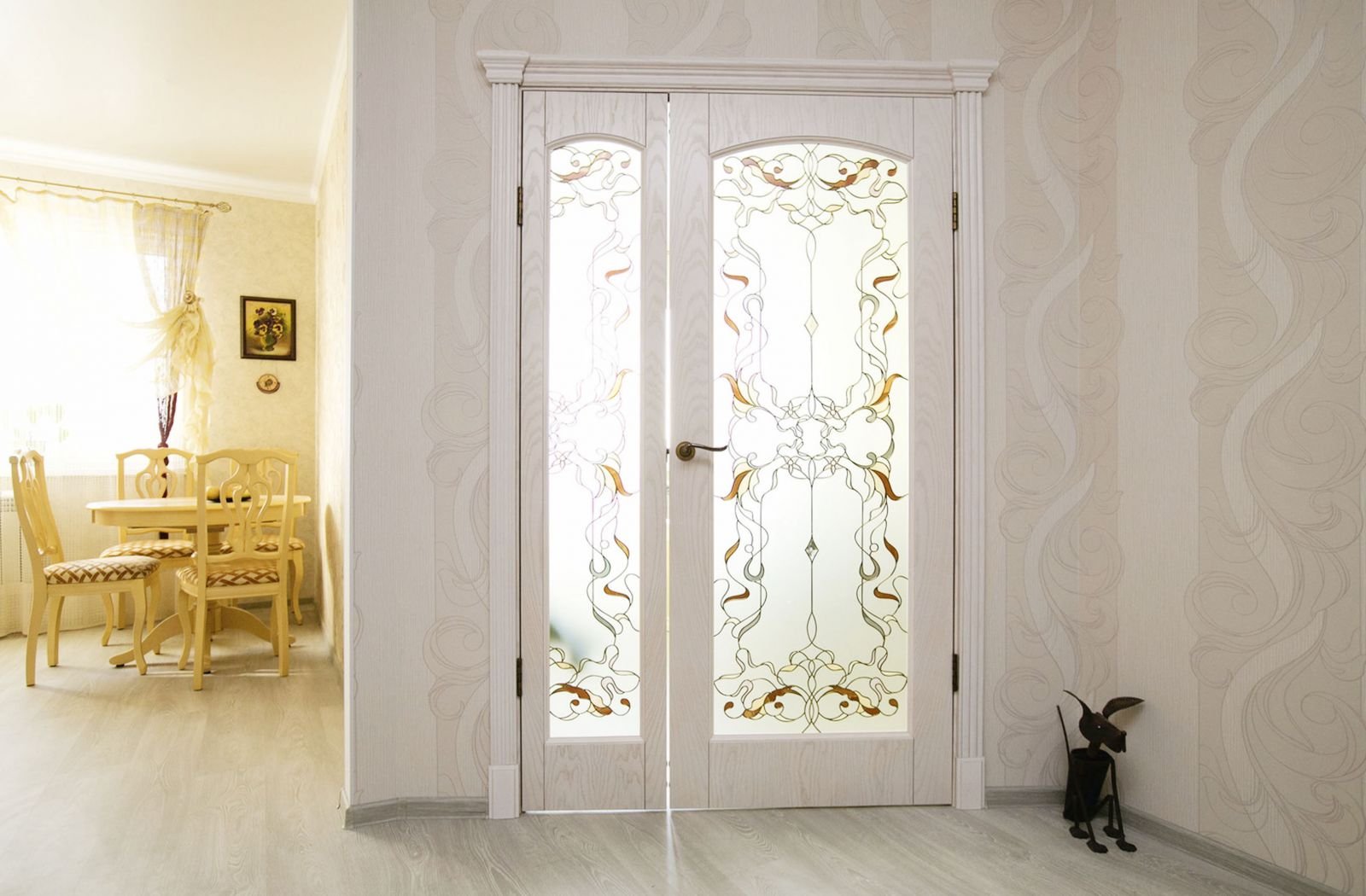 Распашные двери межкомнатные двустворчатые с фрамугой