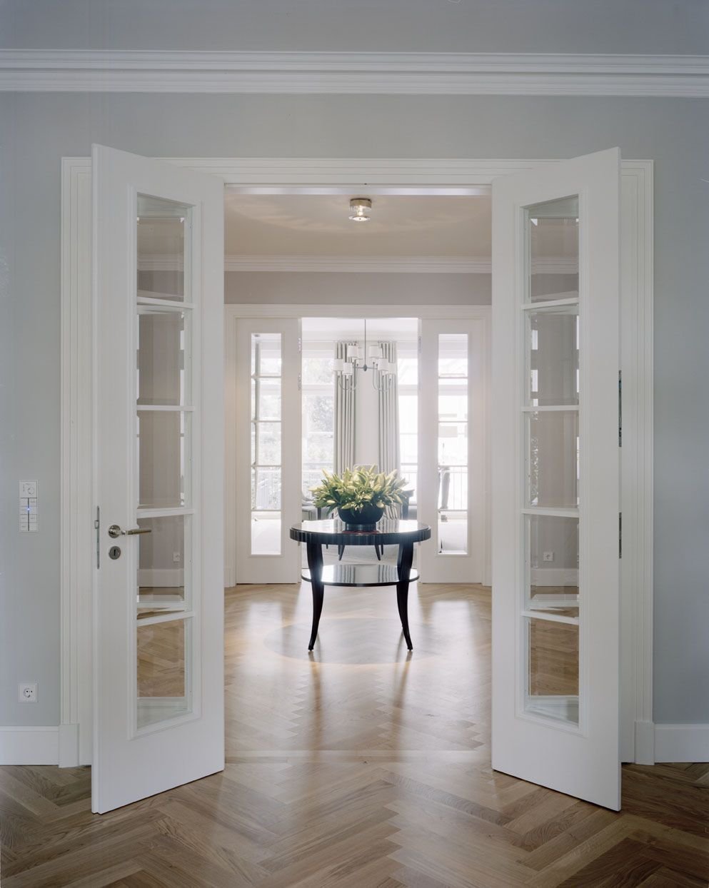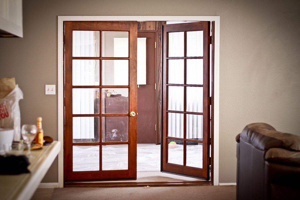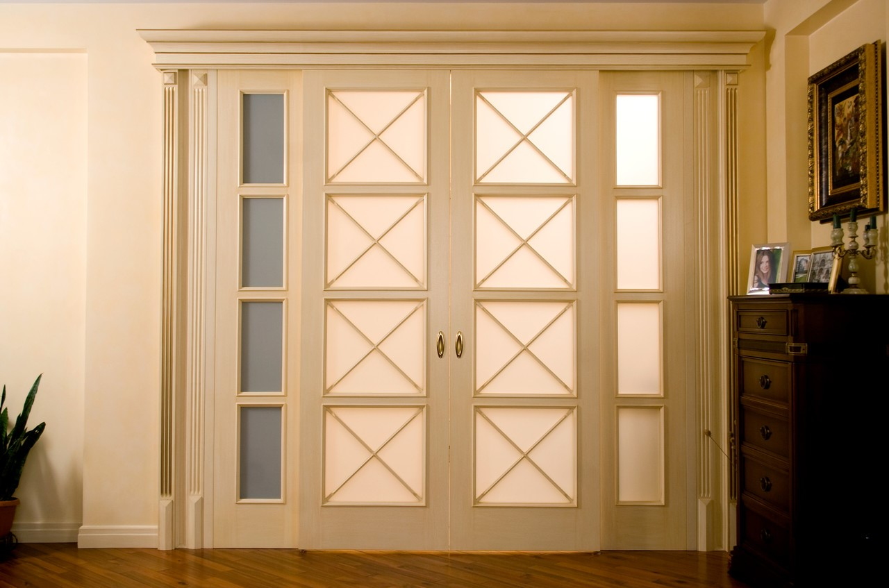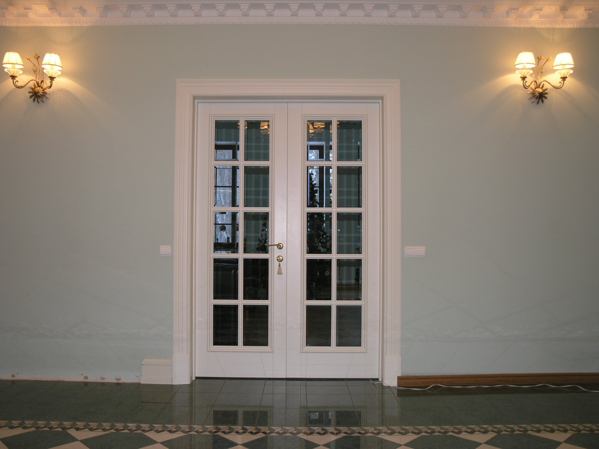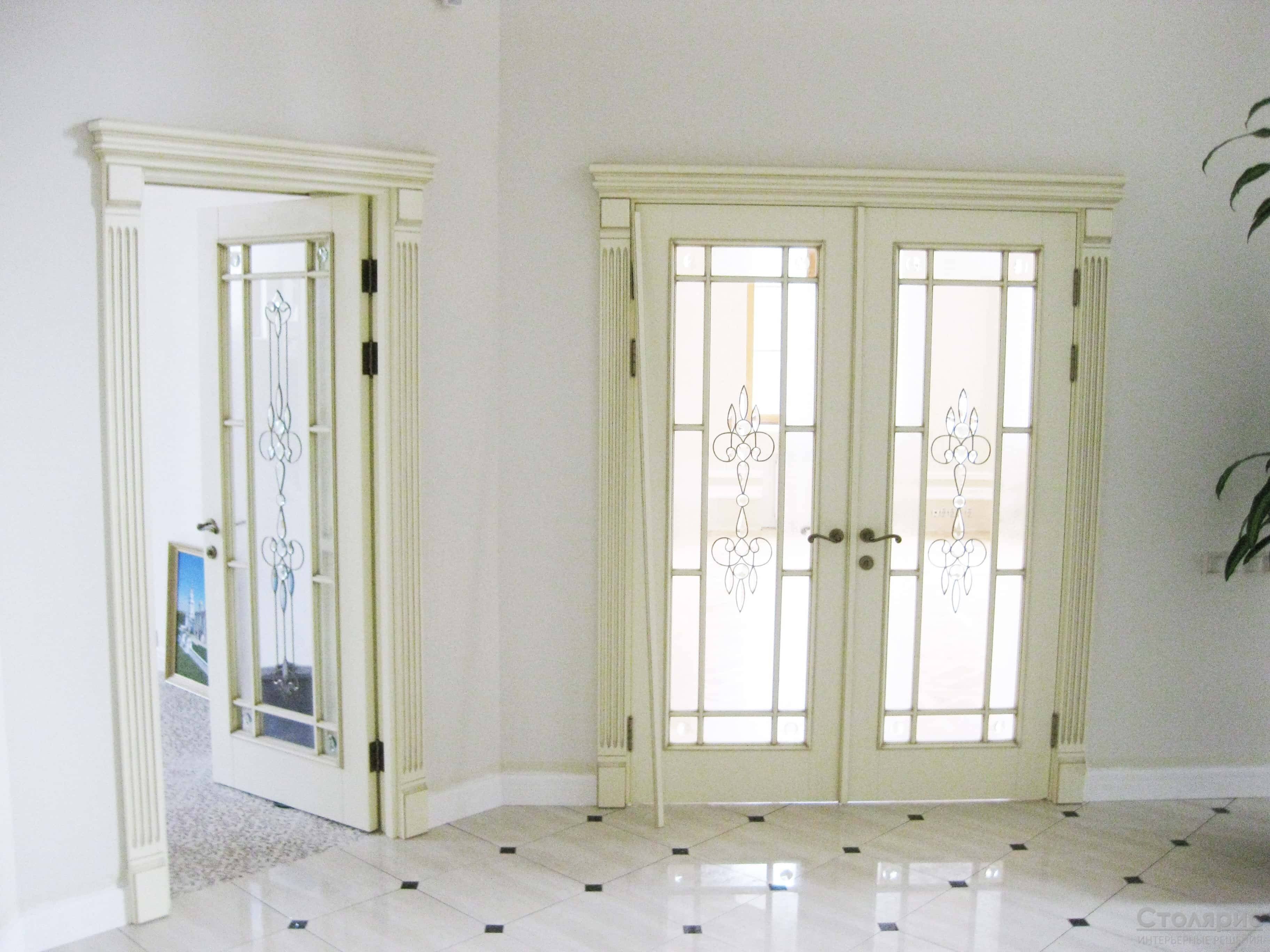 Распашные двери межкомнатные двустворчатые с фрамугой