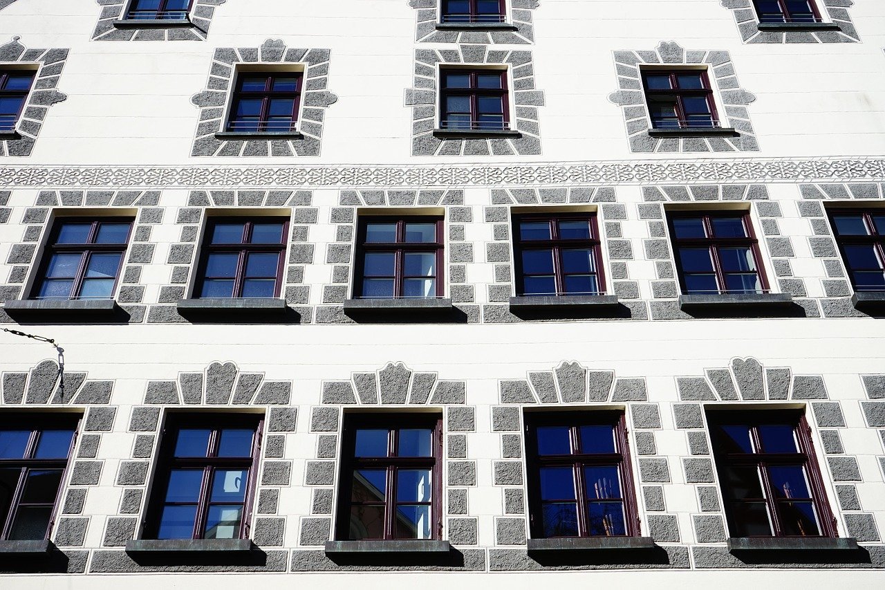 Фасады домов с окнами