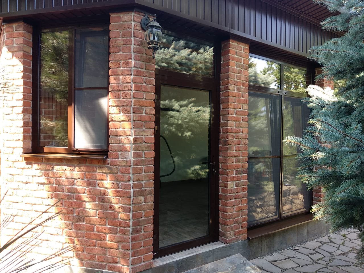 Застекленная веранда с кирпичными столбами