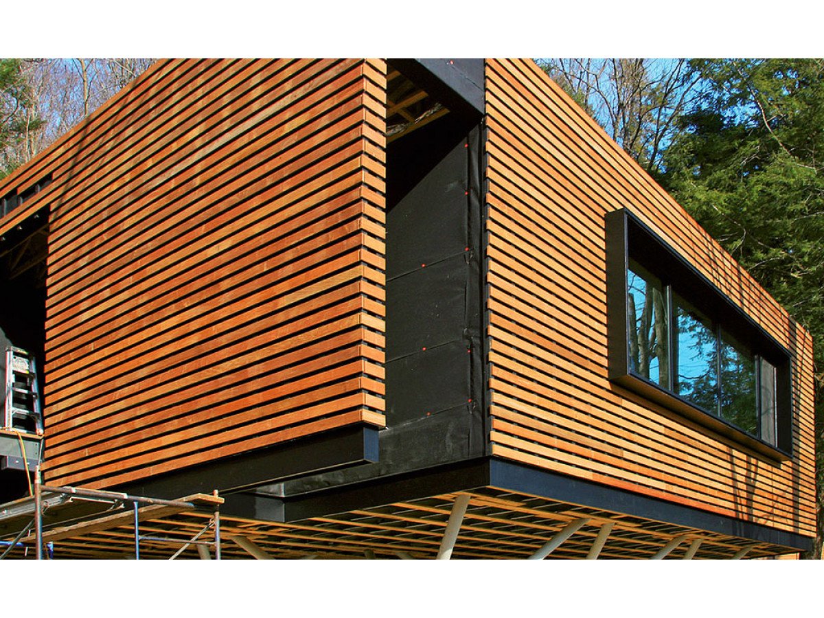Отделка фасада рейками