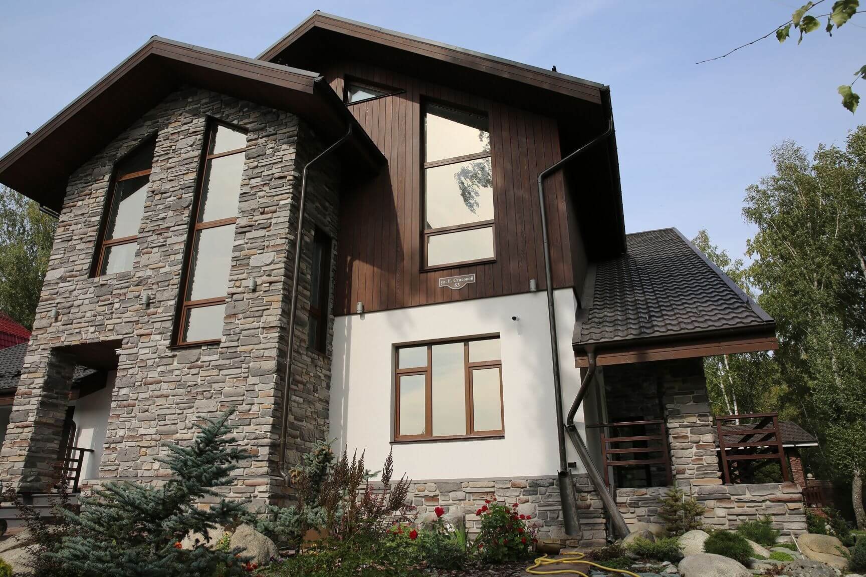 Фасад из планкена и камня
