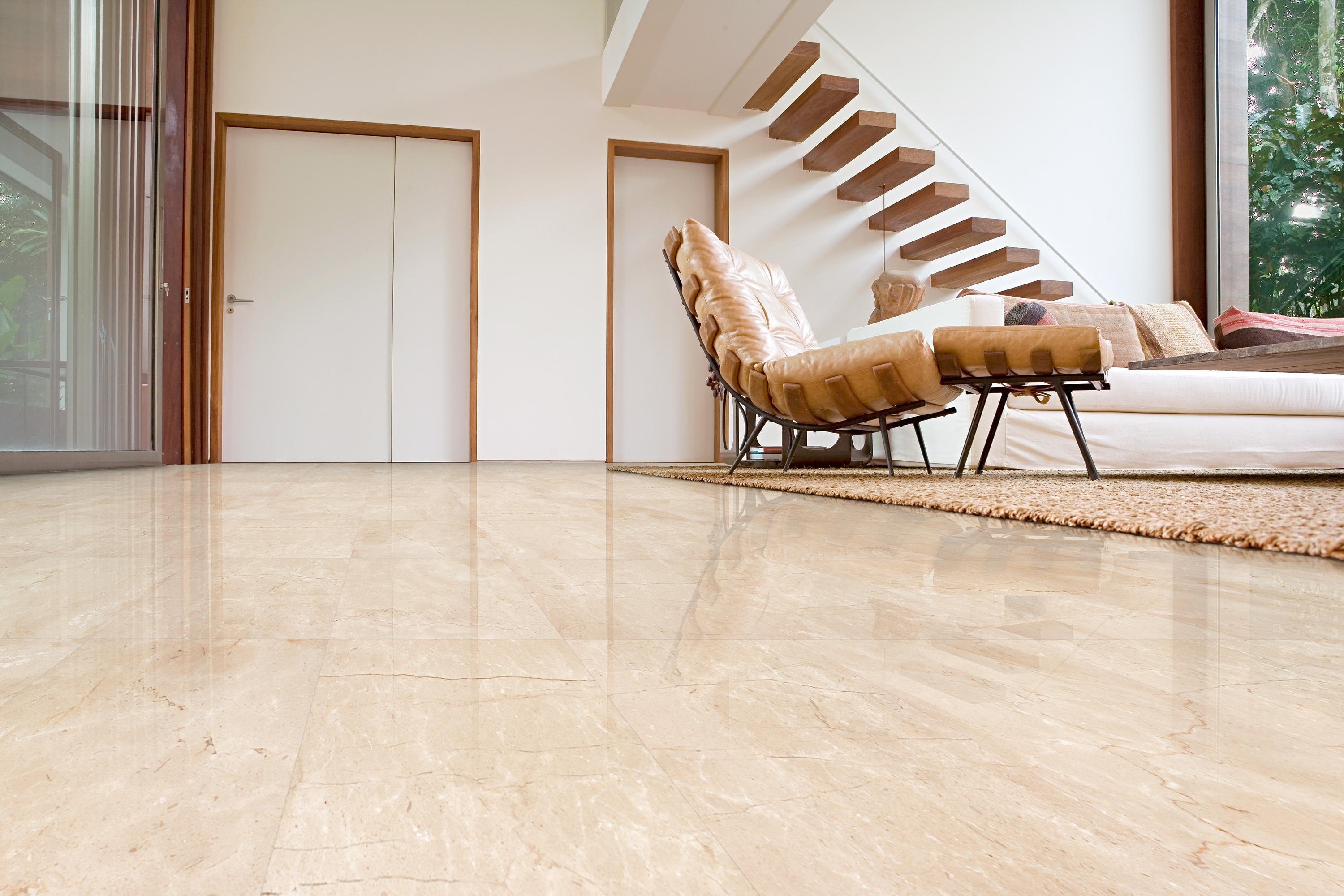 Кухня с мраморной плиткой на полу