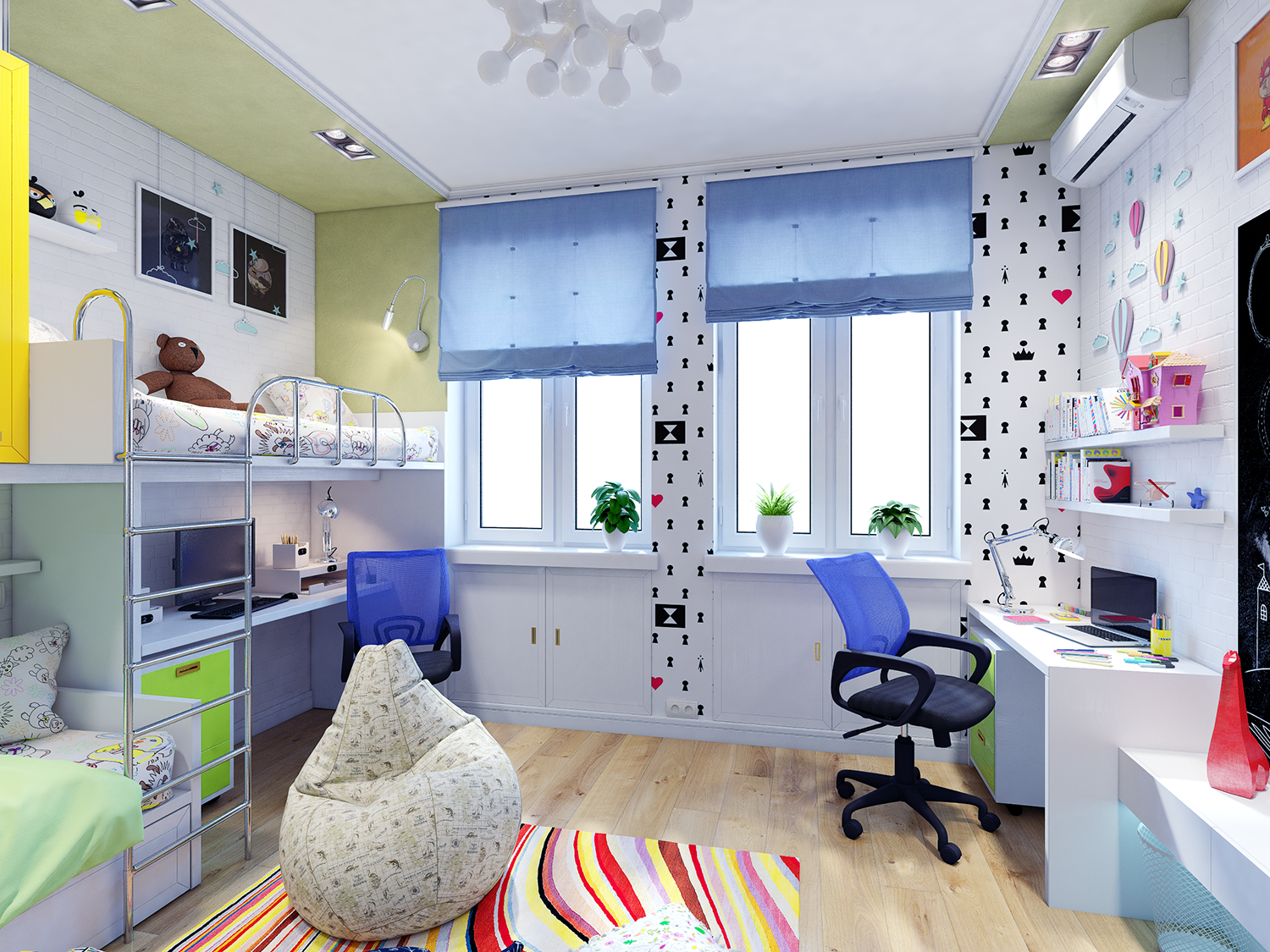 Комната для двоих разнополых подростков 20 кв.м с перегородкой