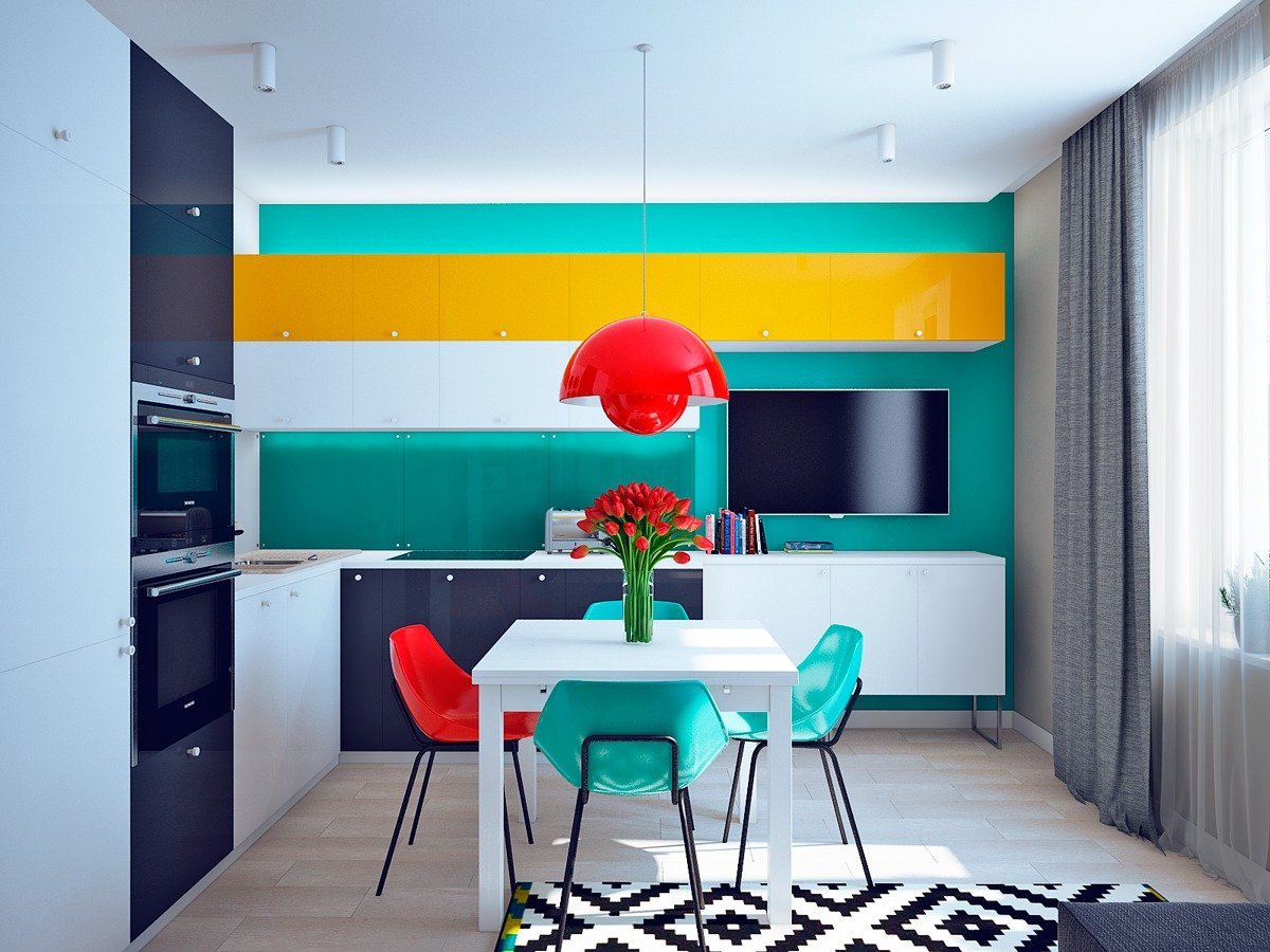 Колор блокинг в интерьере кухни