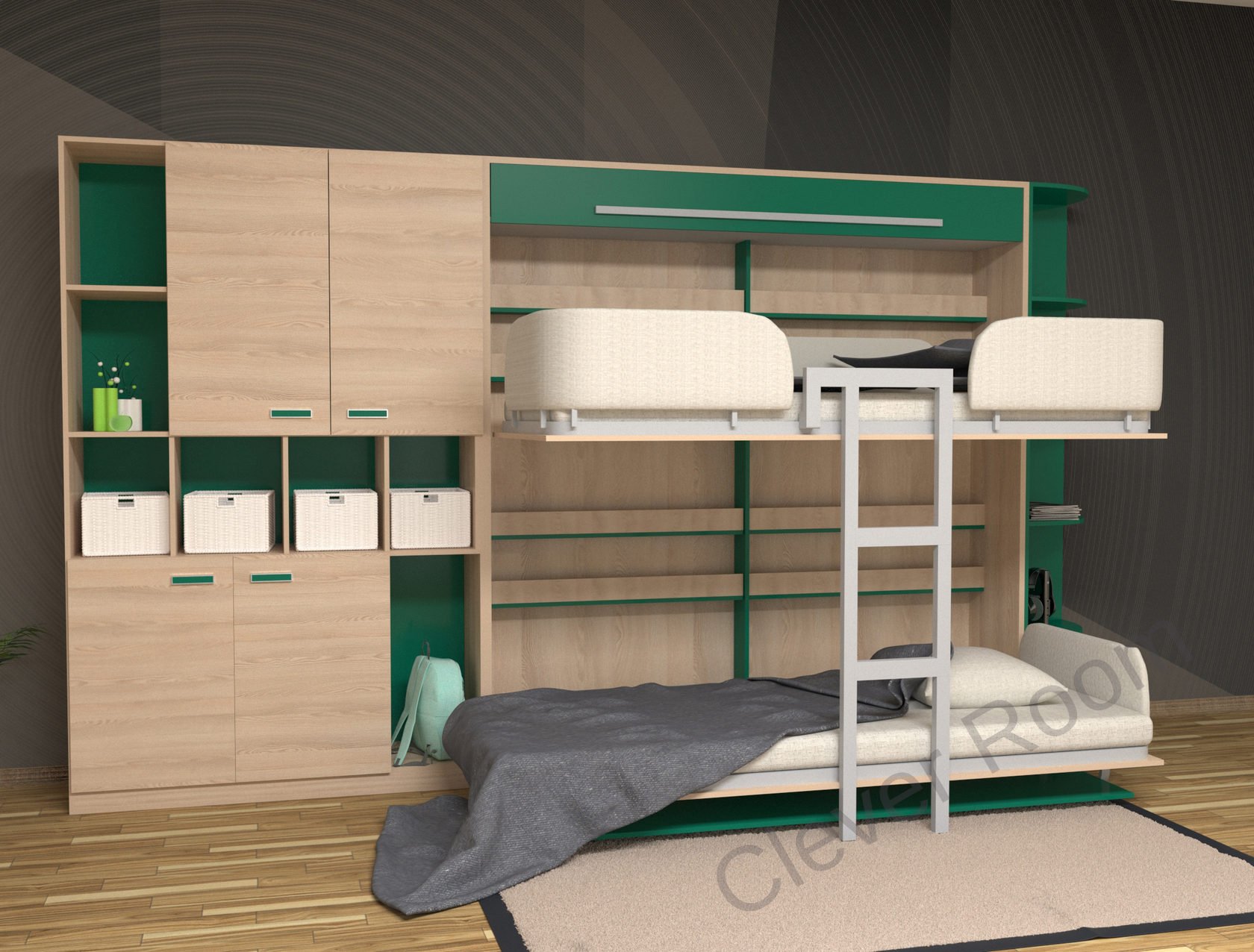 Откидная двухъярусная кровать трансформер