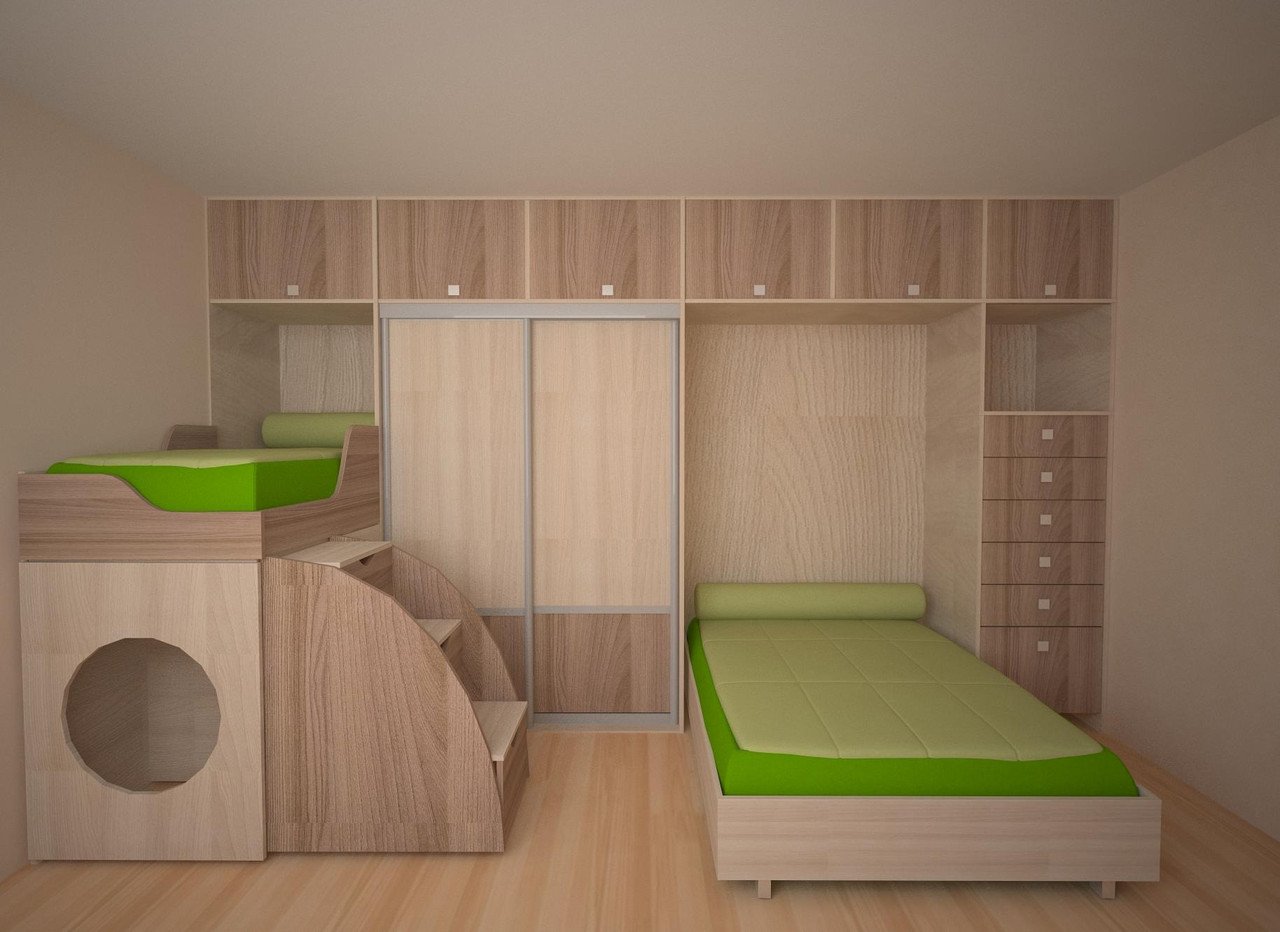 Кровать для двоих детей в маленькой комнате