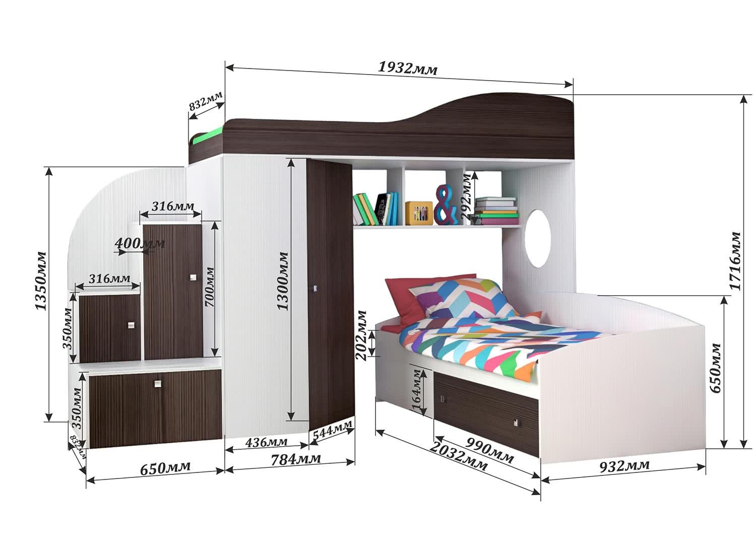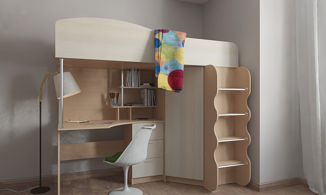 Двухъярусная кровать с угловым шкафом