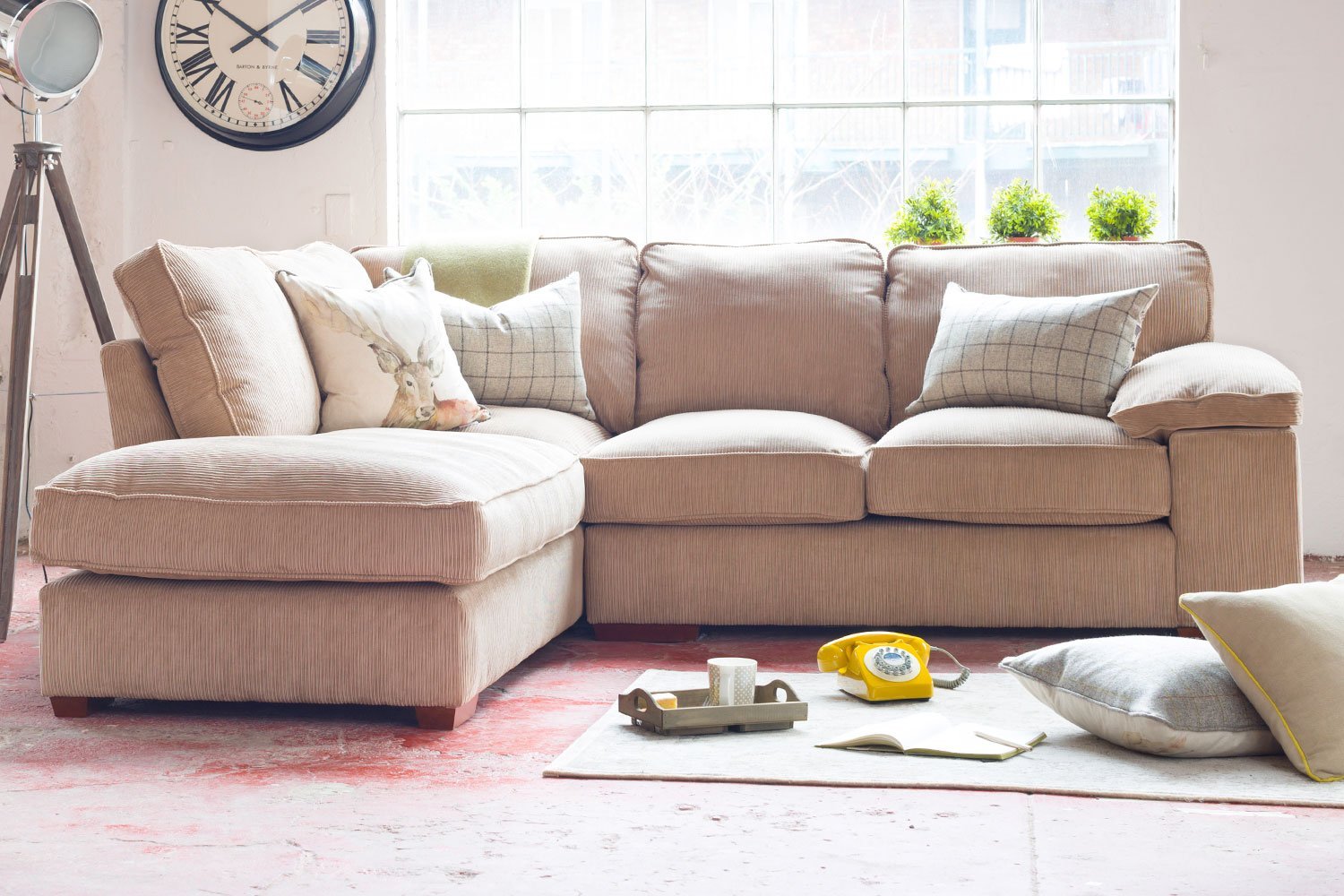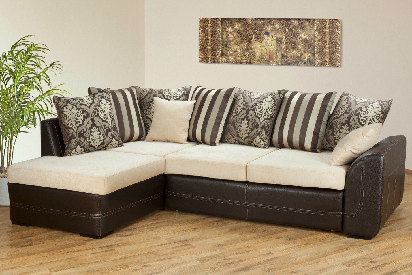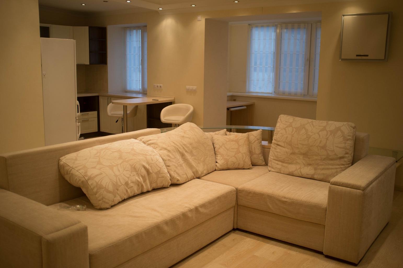 Бежевый диван с подушками