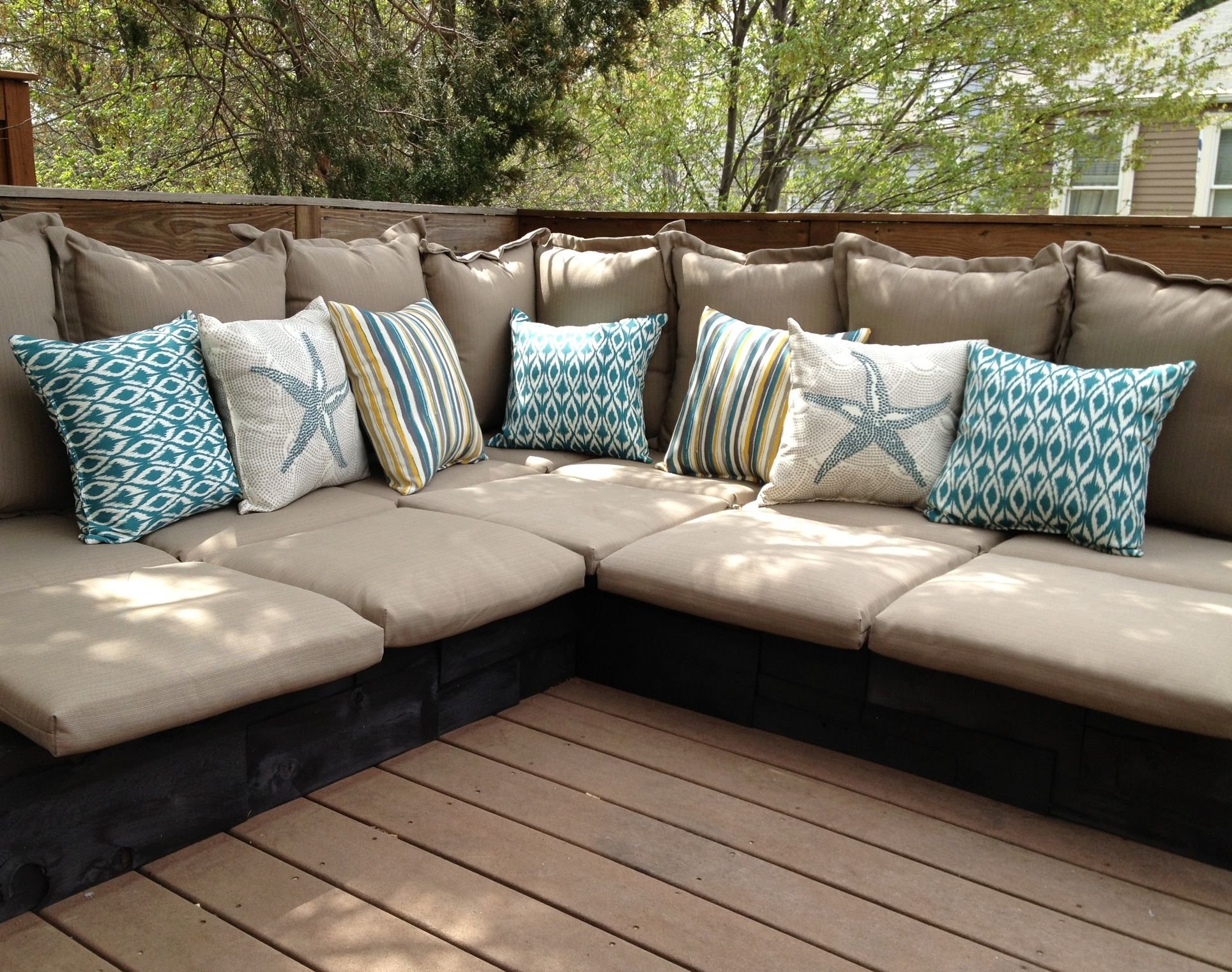 Деревянный диван с подушками для дачи