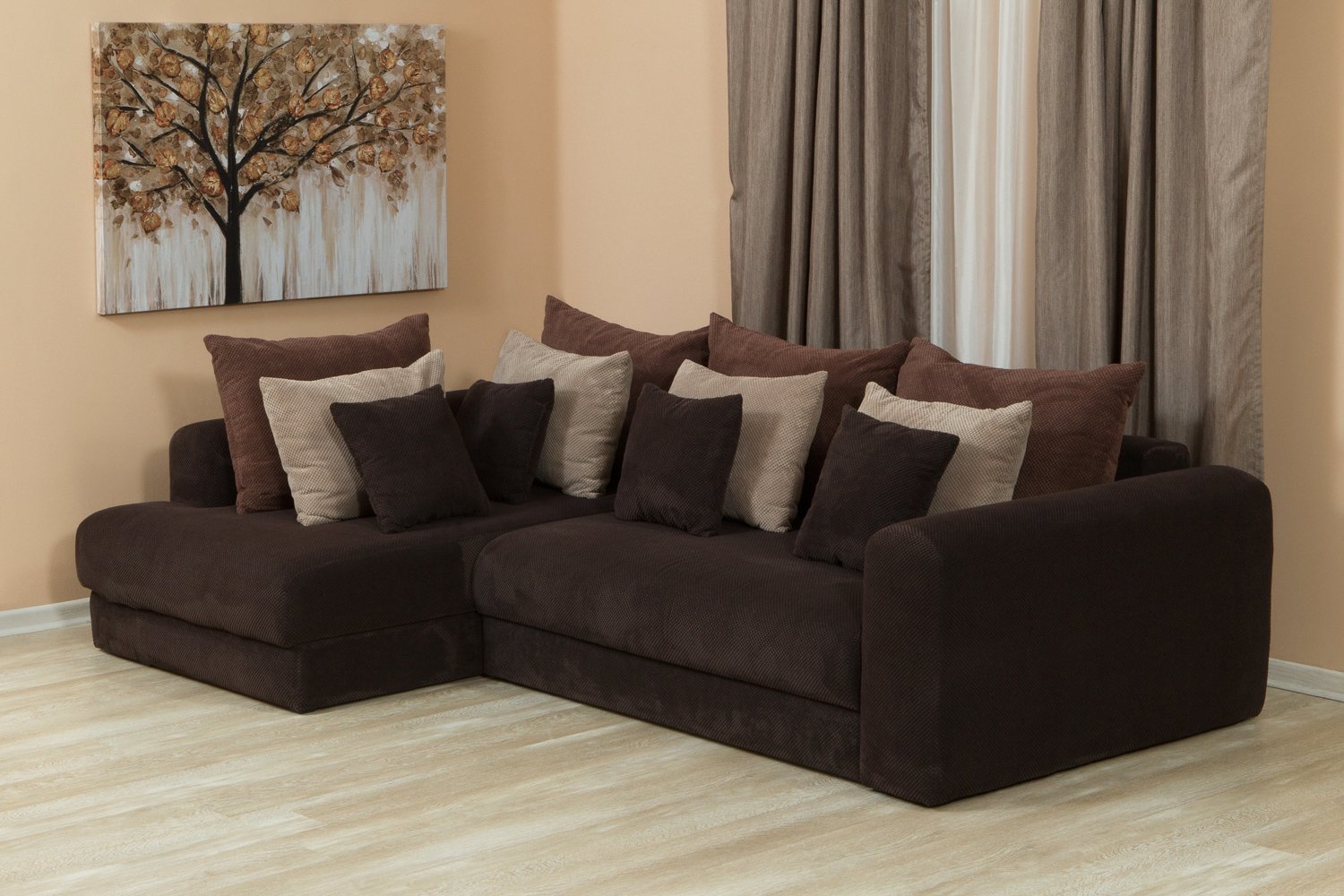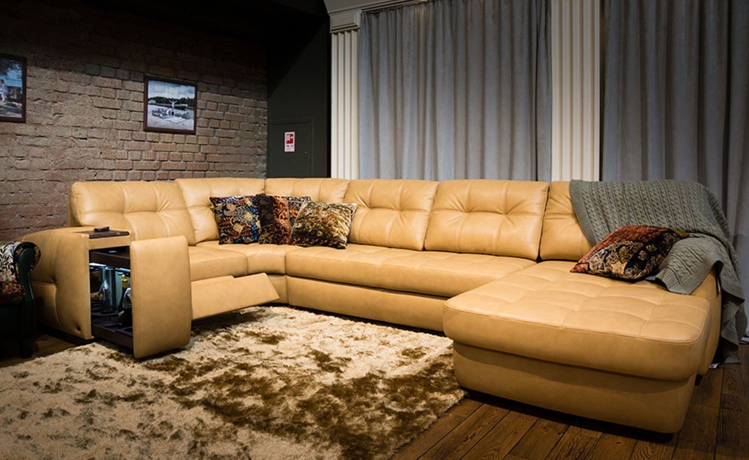 Большой угловой диван с подушками
