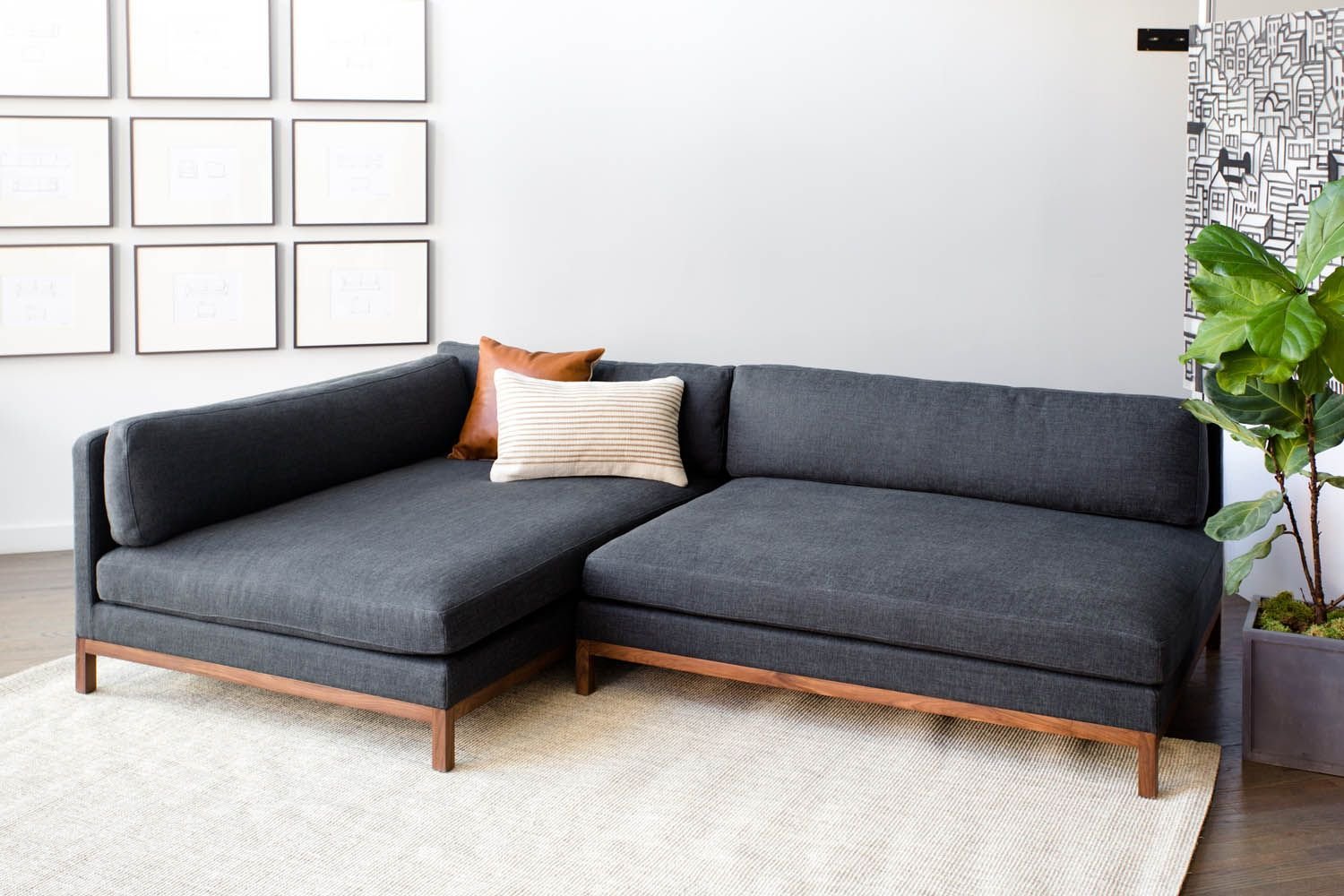 Диван с низкой спинкой и подушками