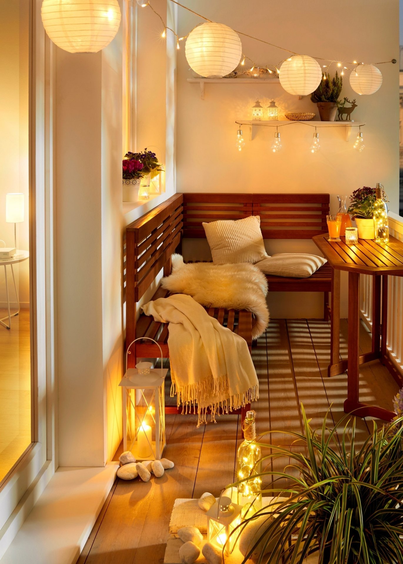 Украсить балкон гирляндой
