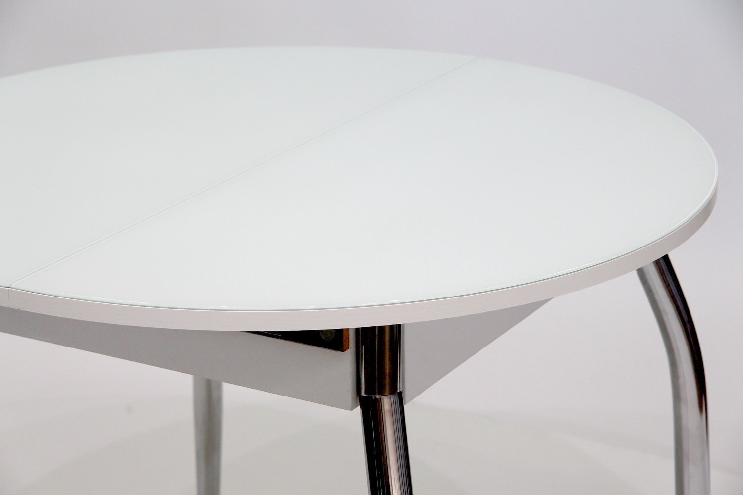 Стеклянный круглый раскладной стол для маленькой кухни