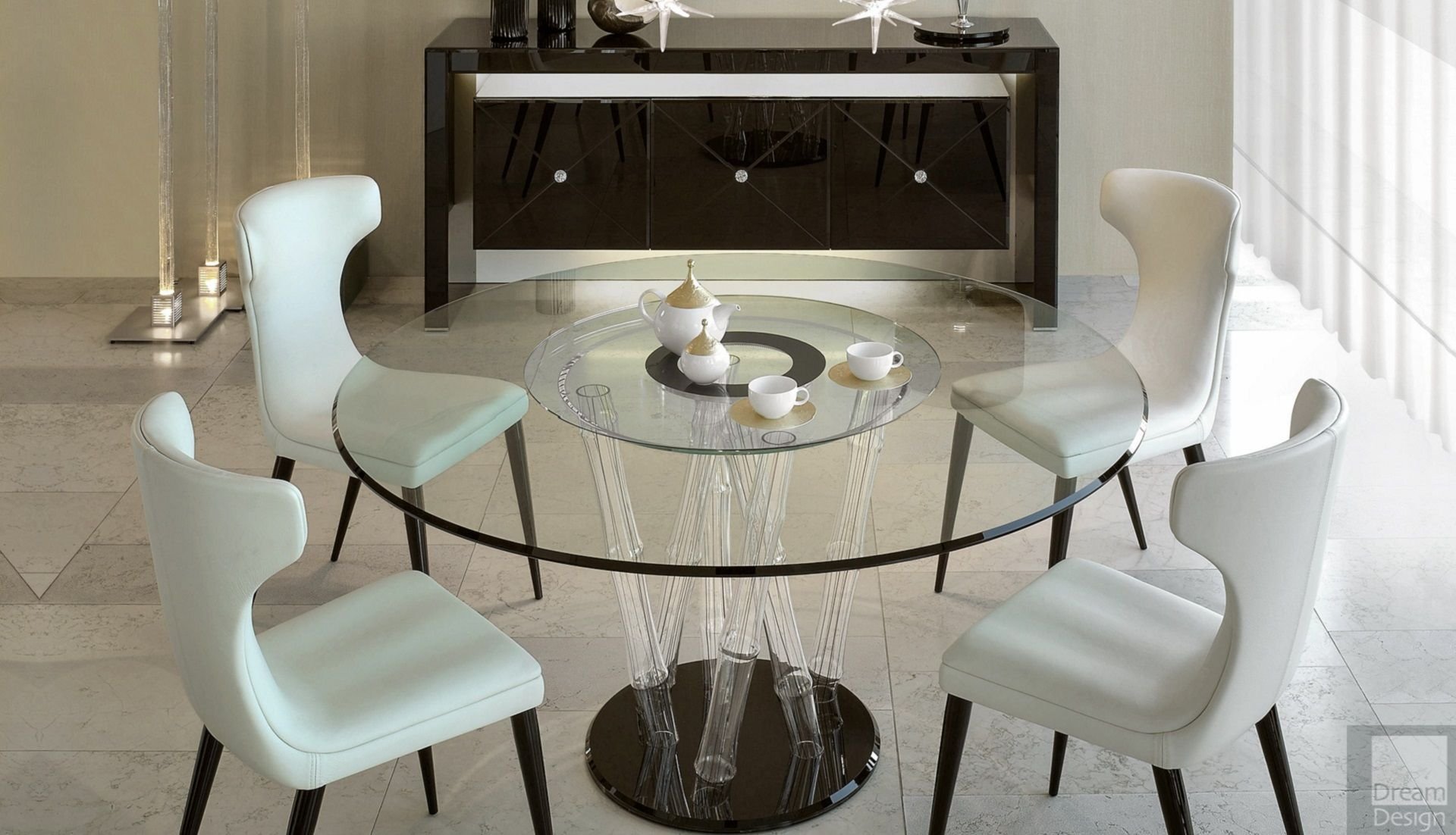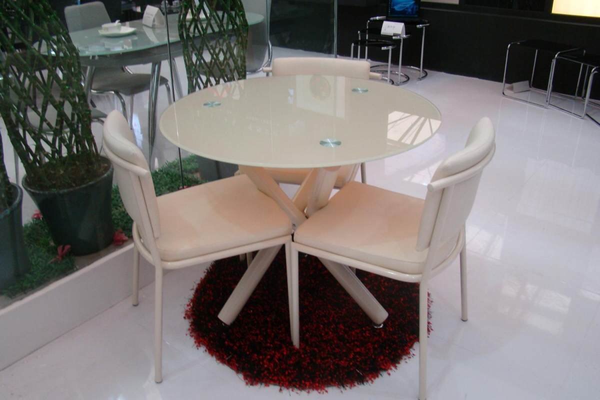 Круглый стеклянный стол со стульями