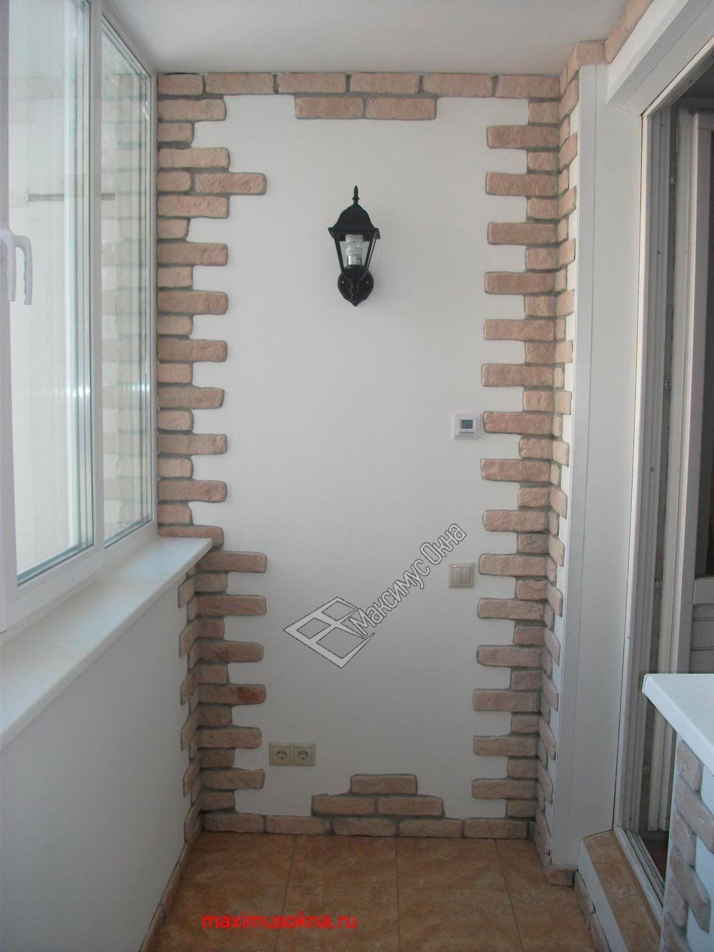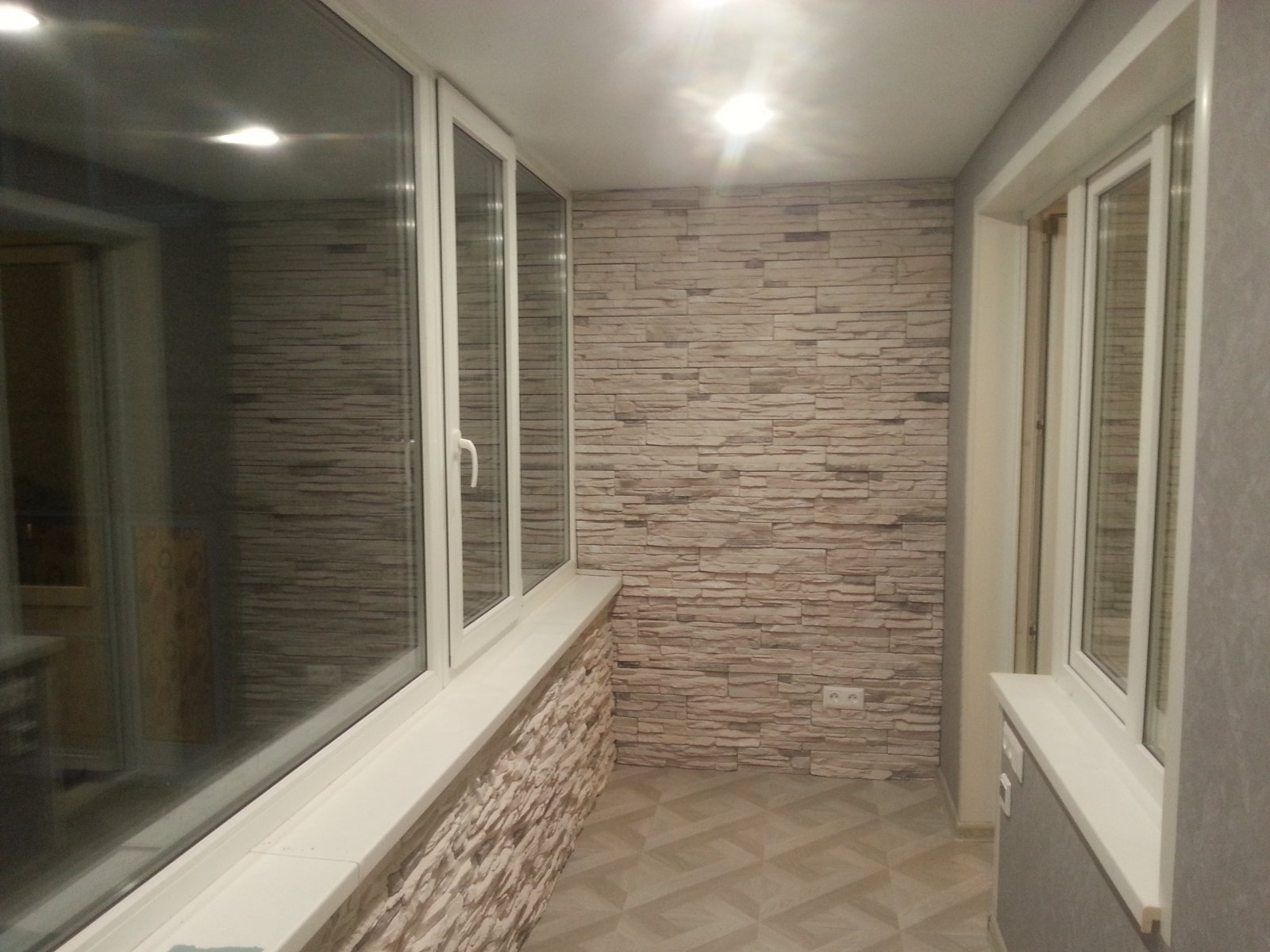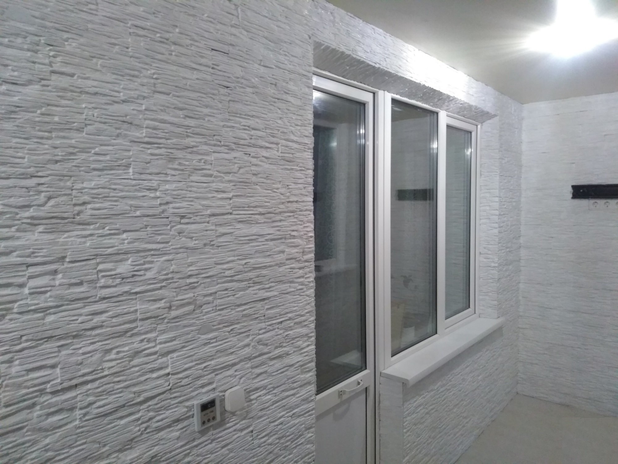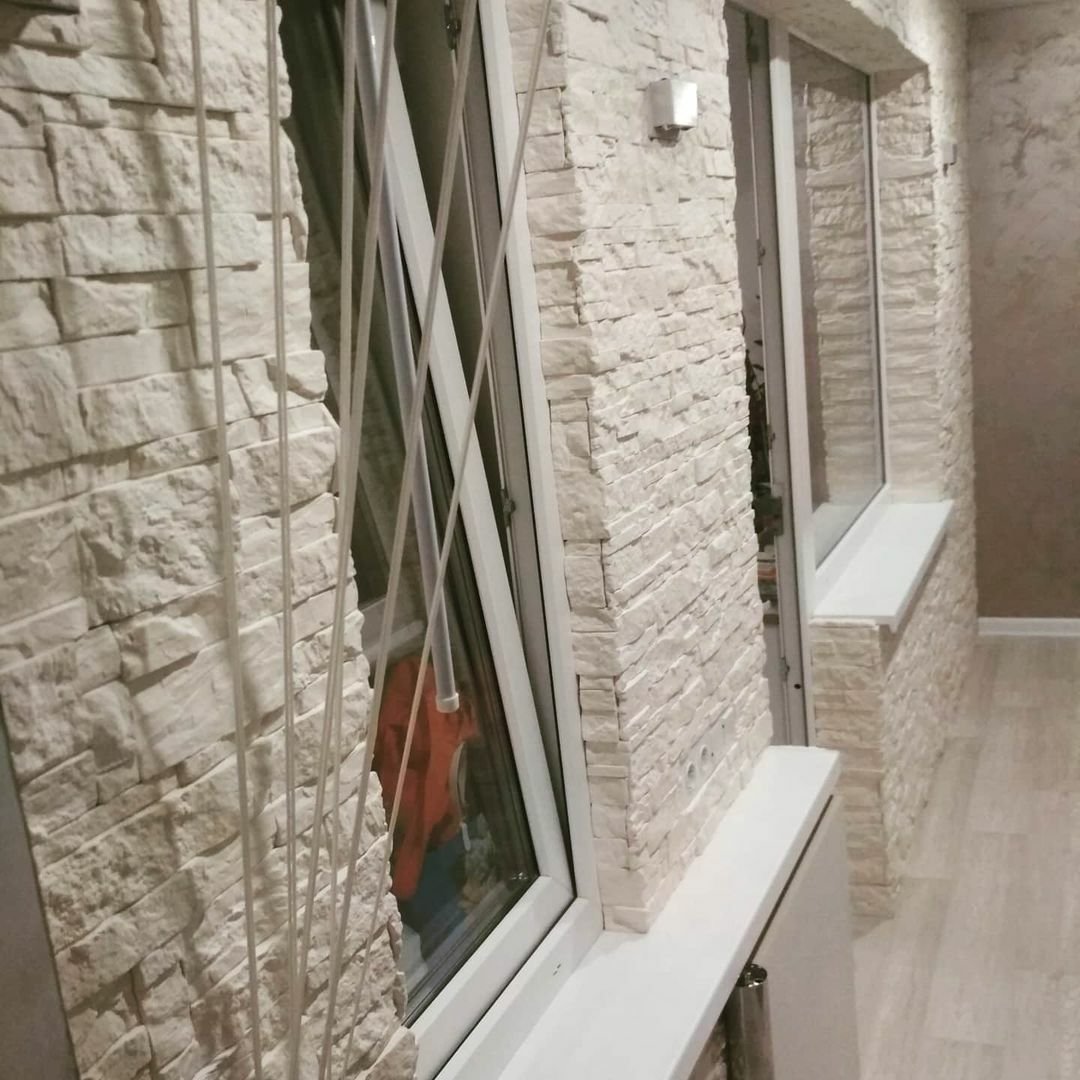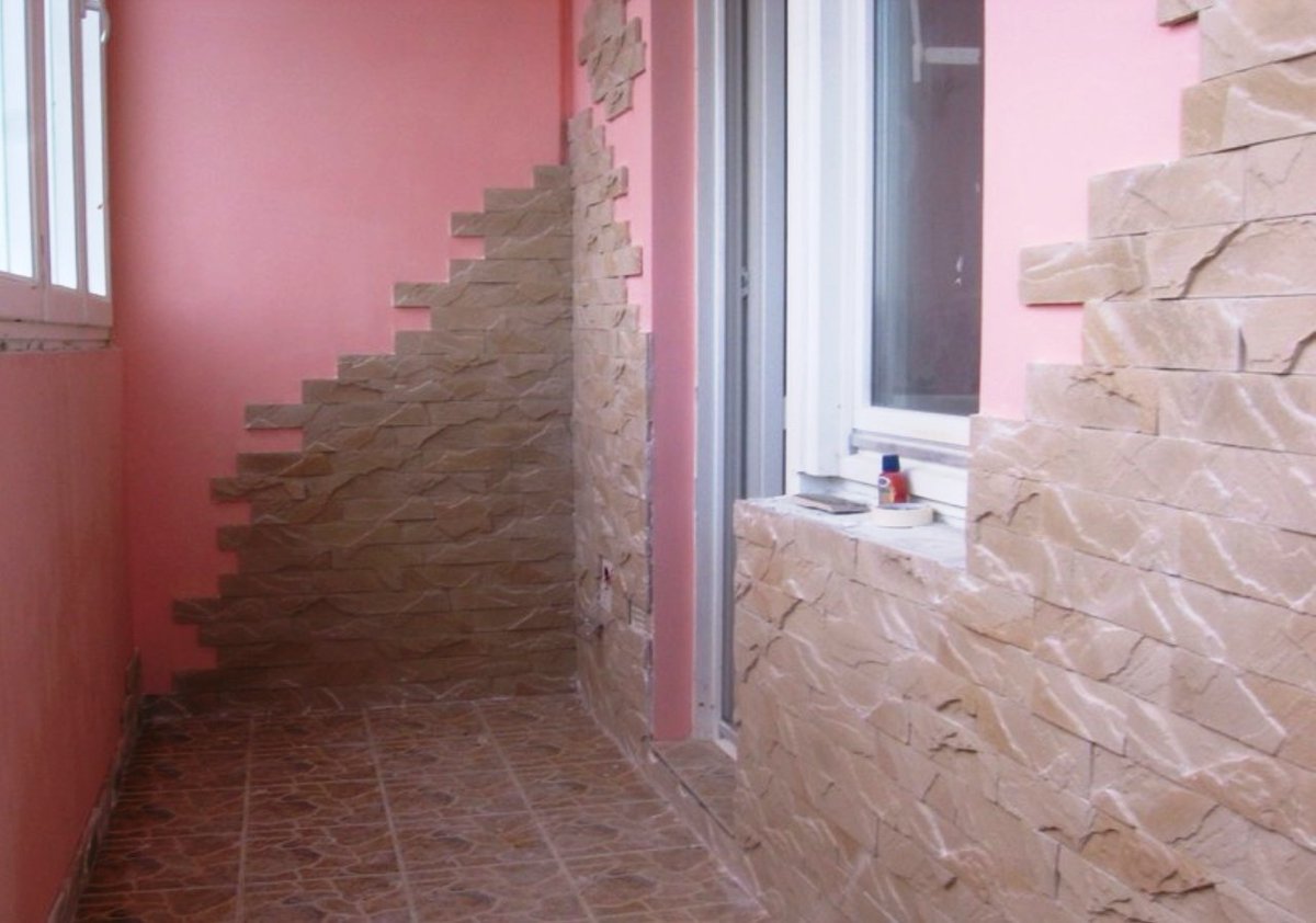 Лоджия с декоративным камнем и декоративной штукатуркой