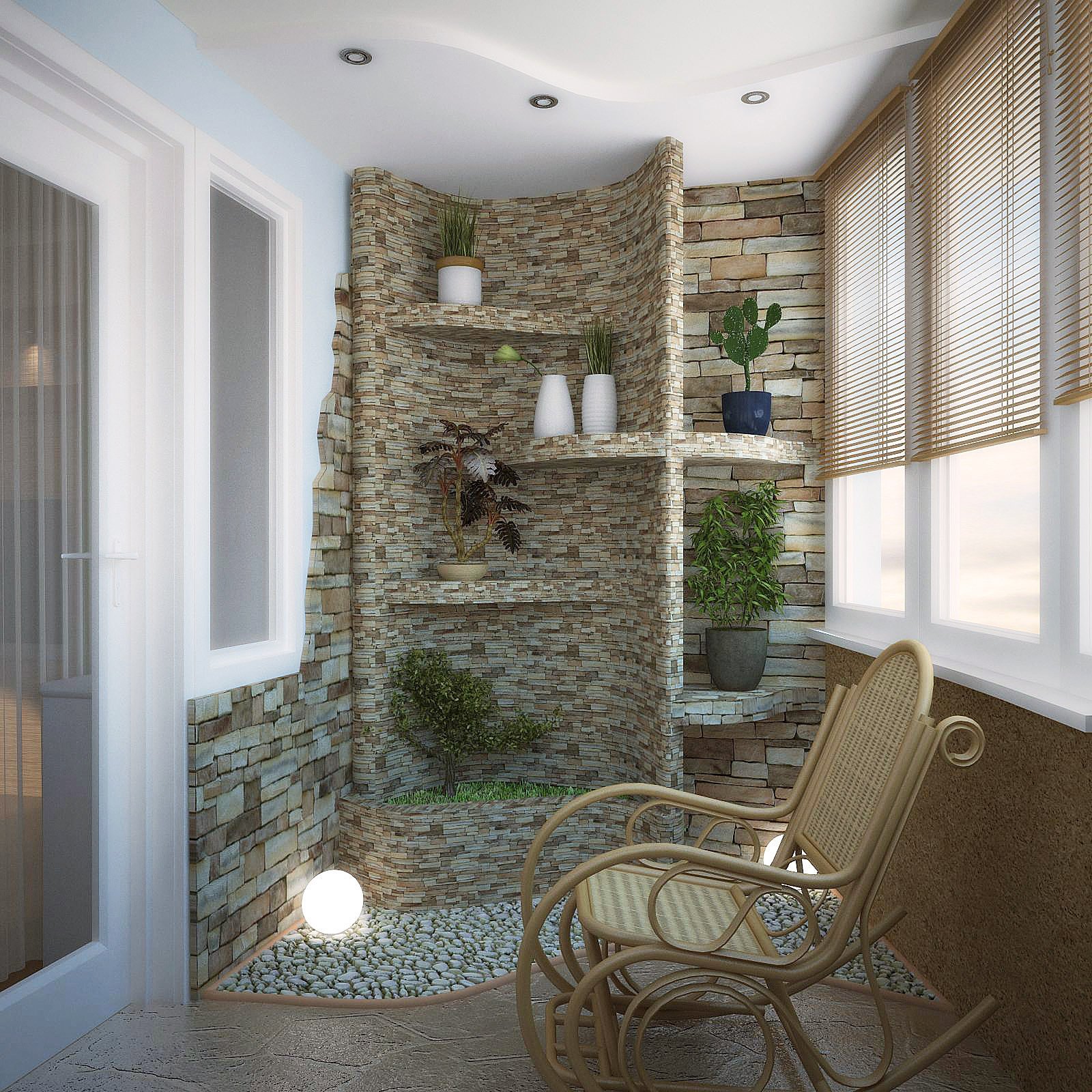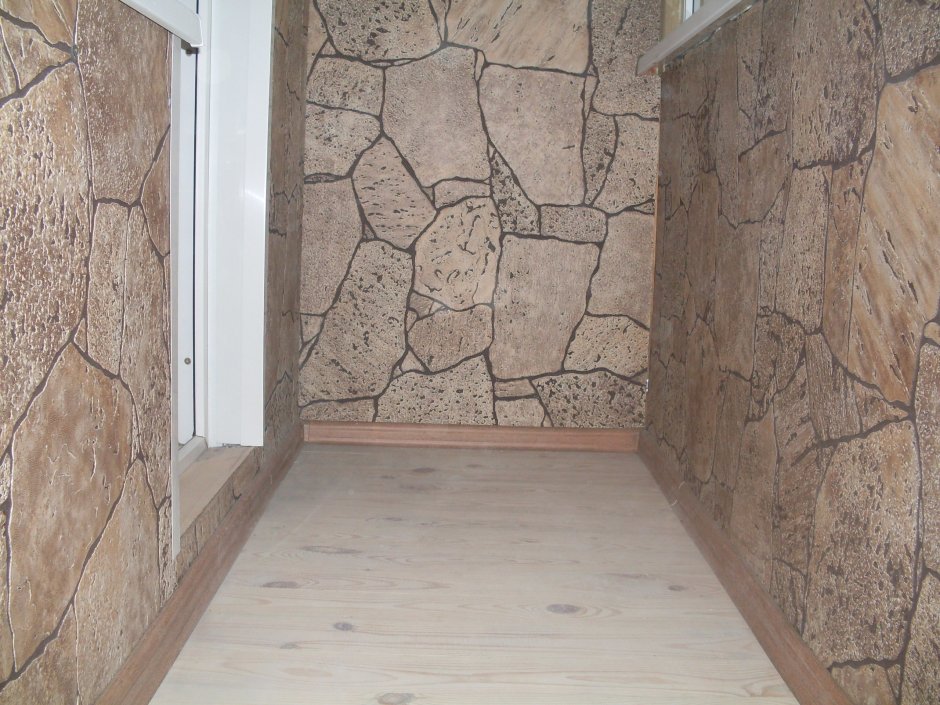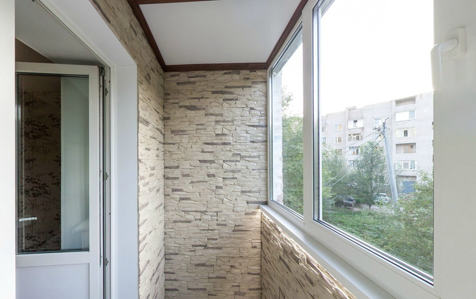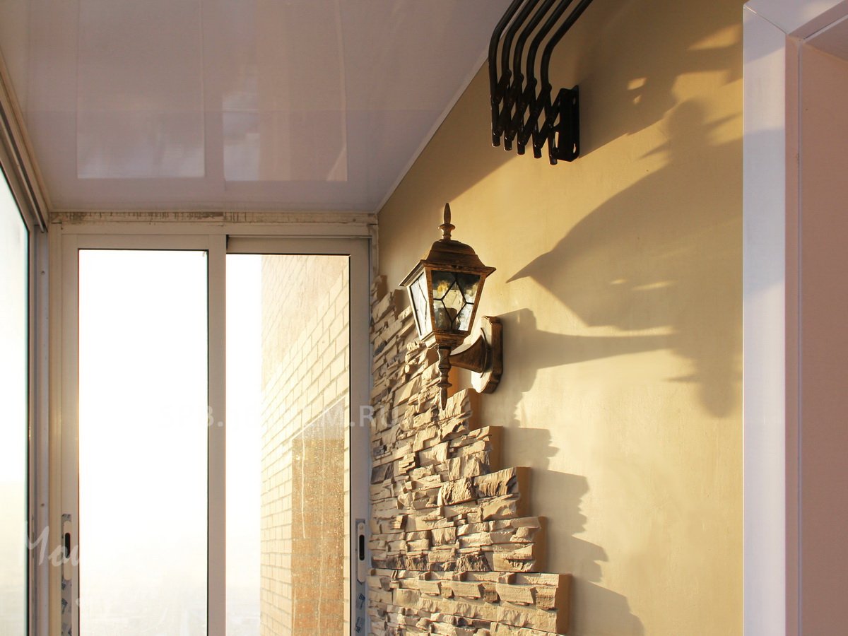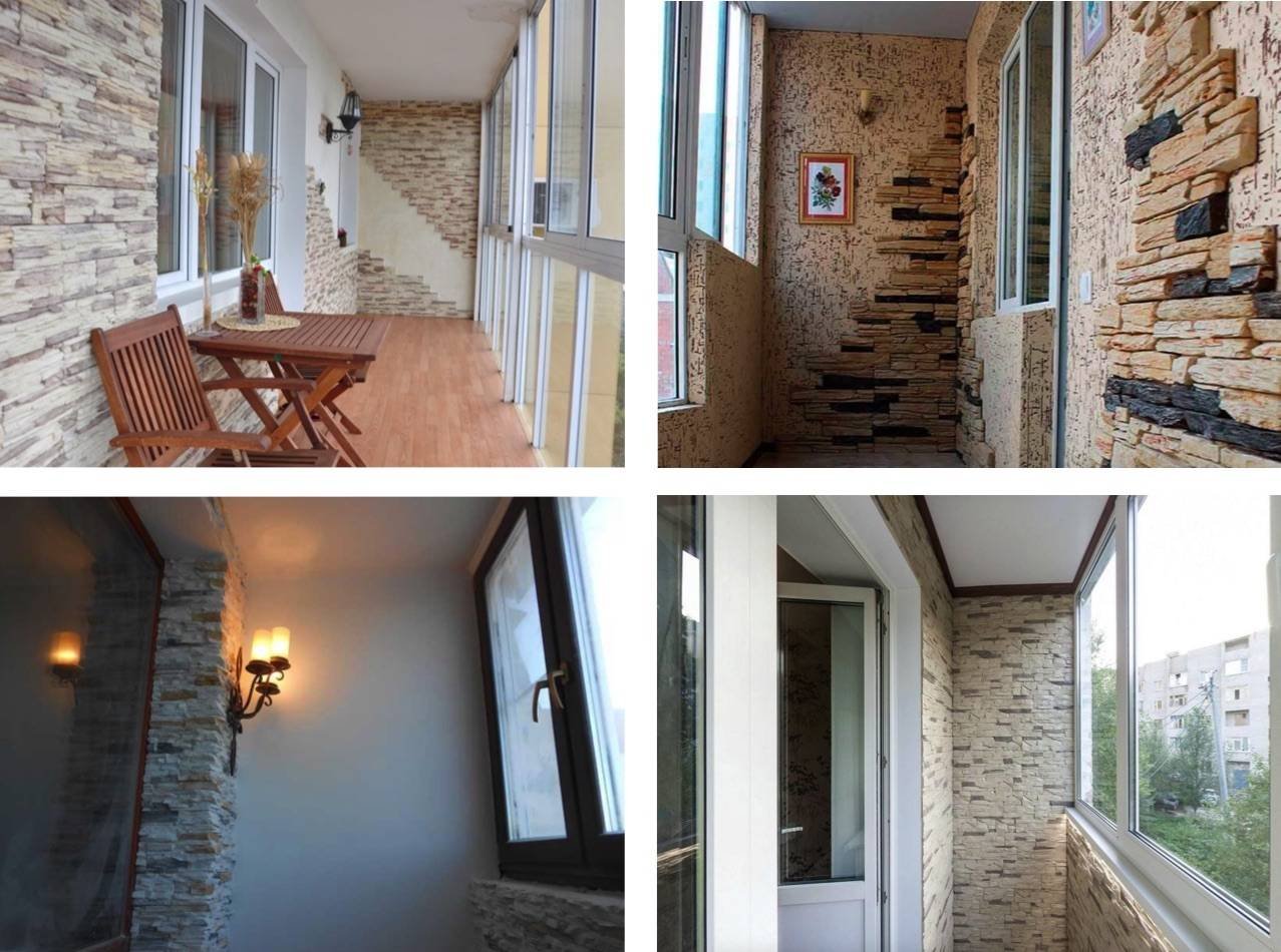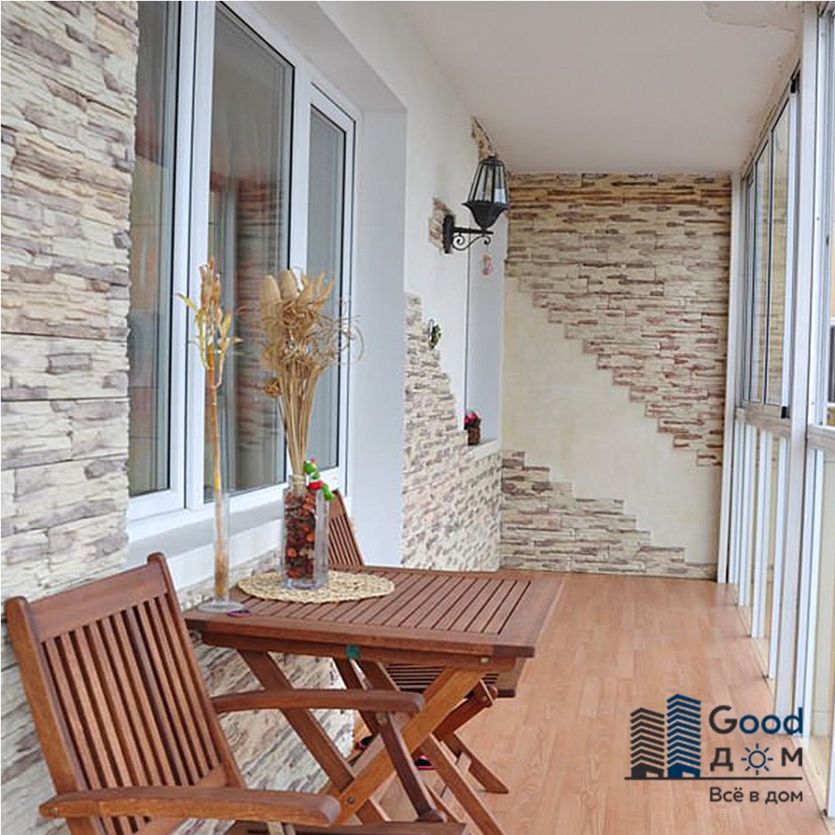Лоджия с декоративным камнем и декоративной штукатуркой