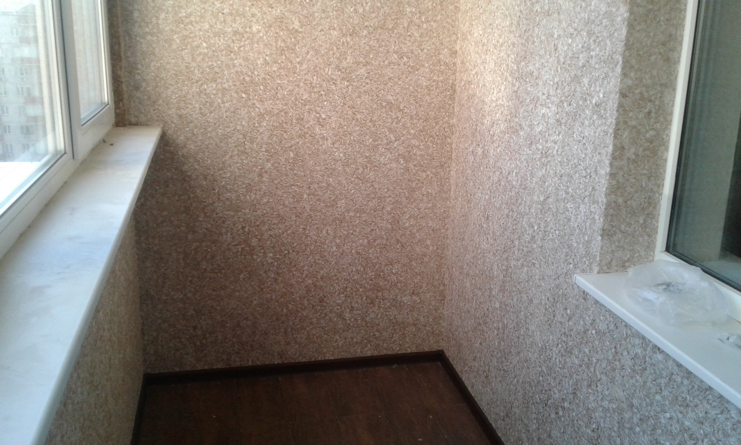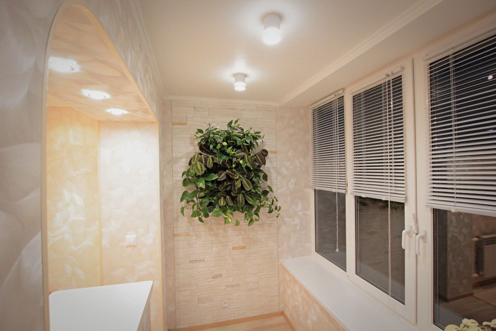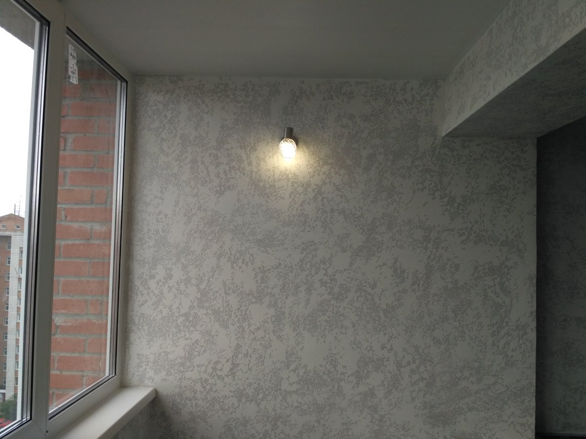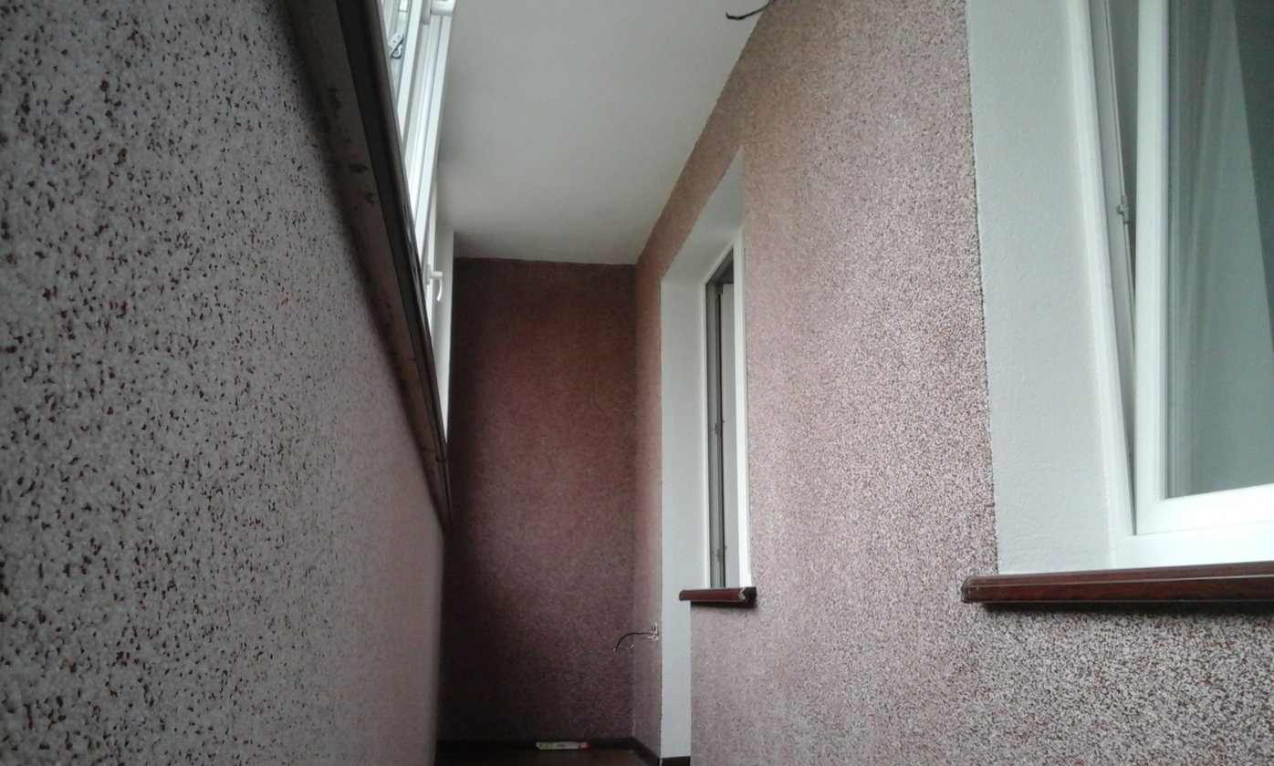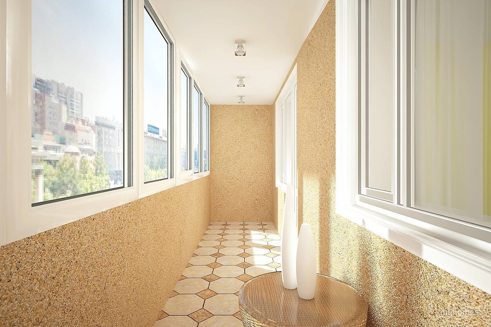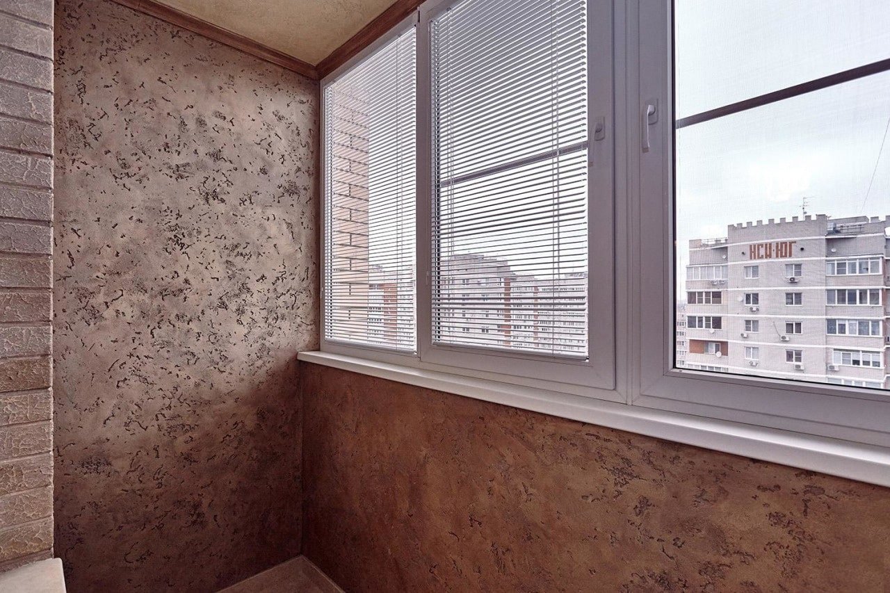 Лоджия с декоративным камнем и декоративной штукатуркой