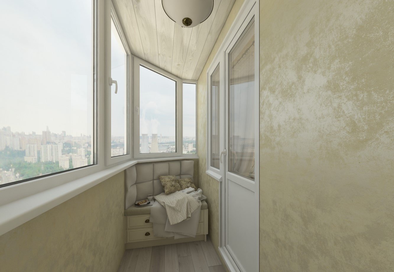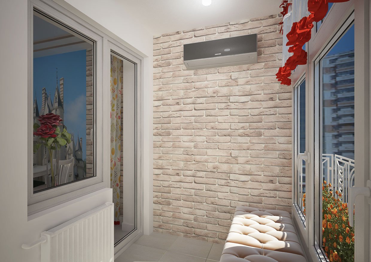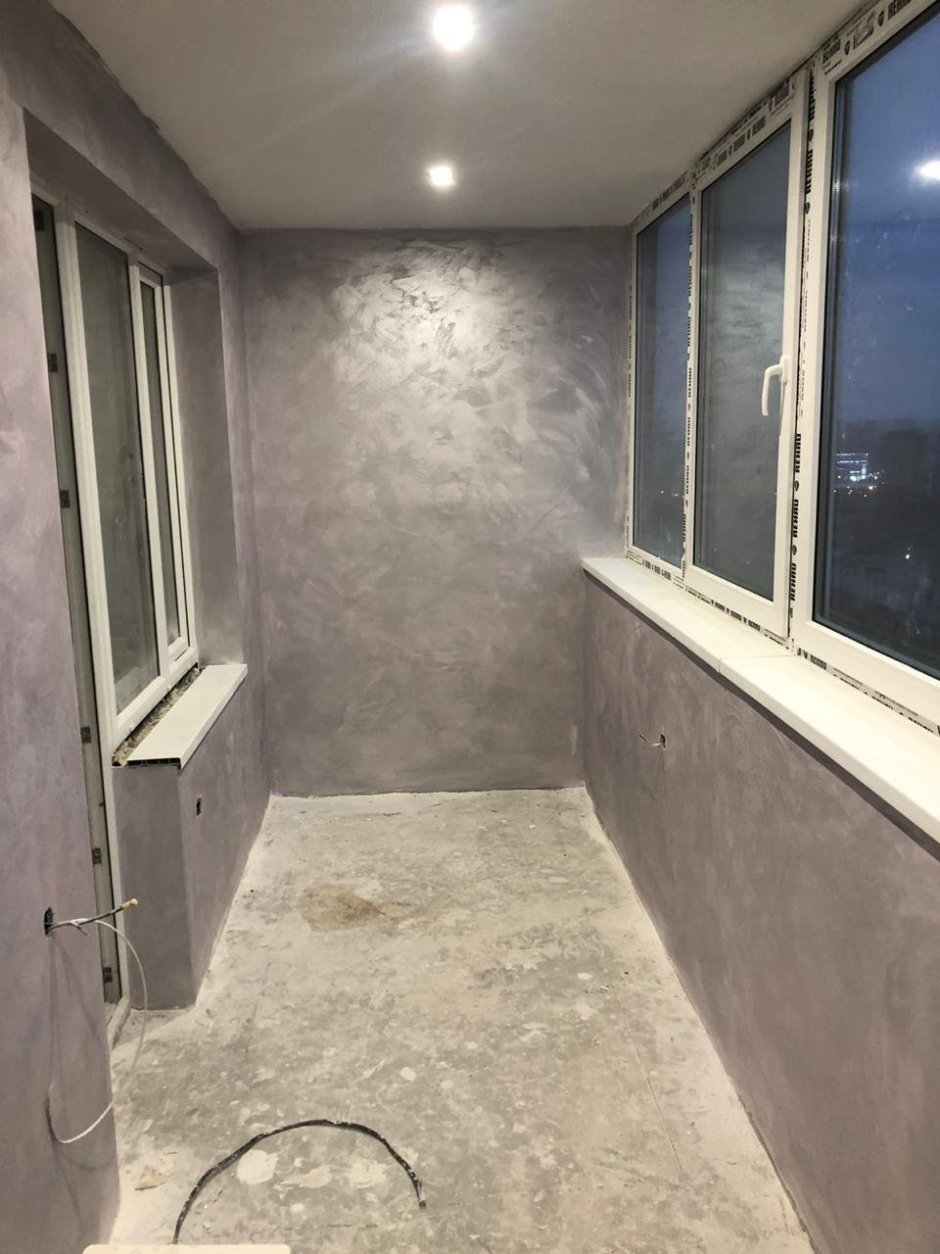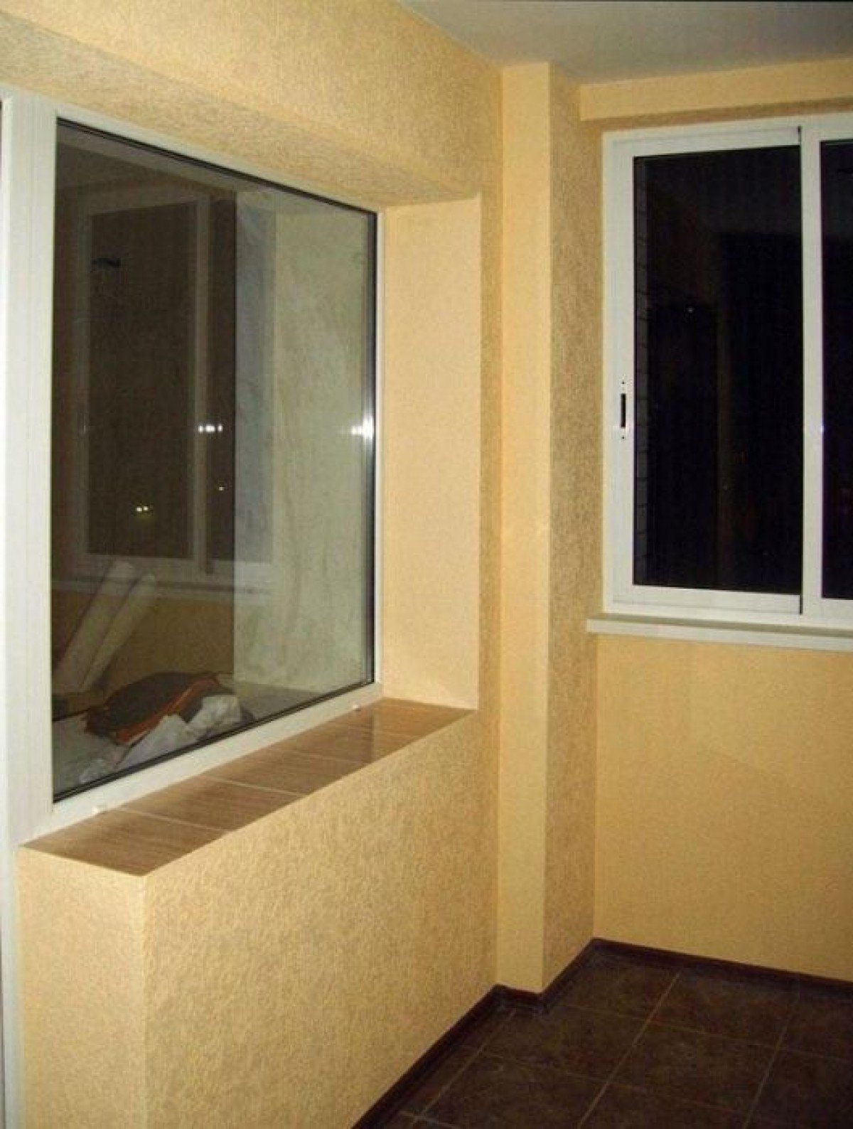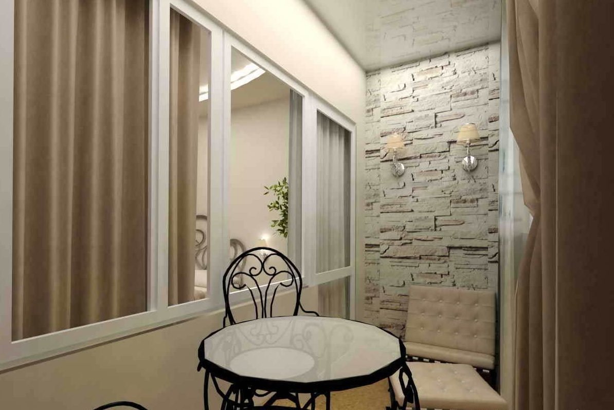 Лоджия с декоративным камнем и декоративной штукатуркой