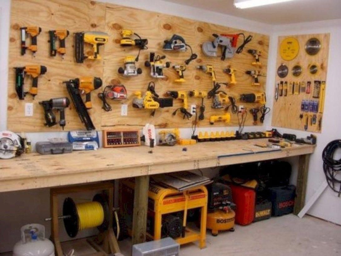 Мастерская в гараже с верстаком