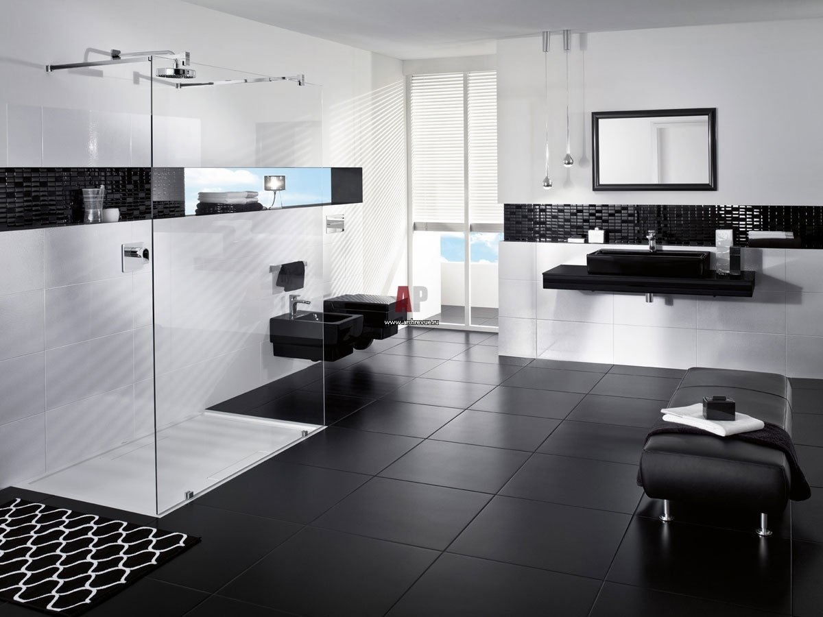 Черный пол белые стены в ванной