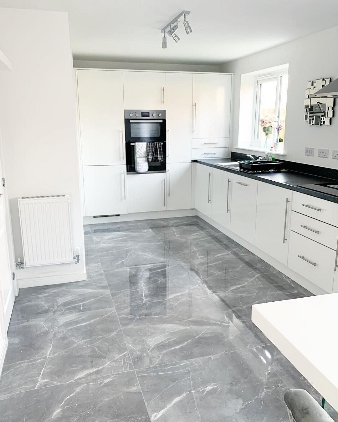Кухня с мраморной плиткой на полу